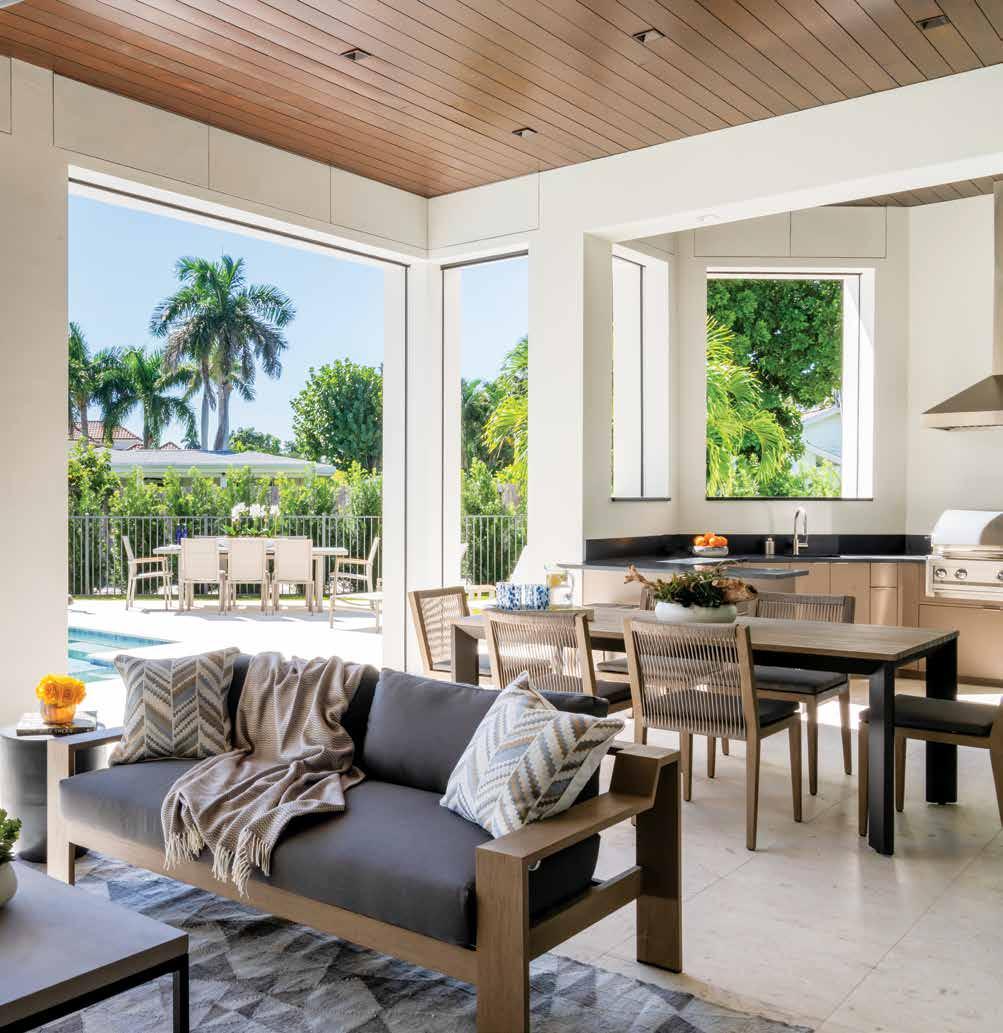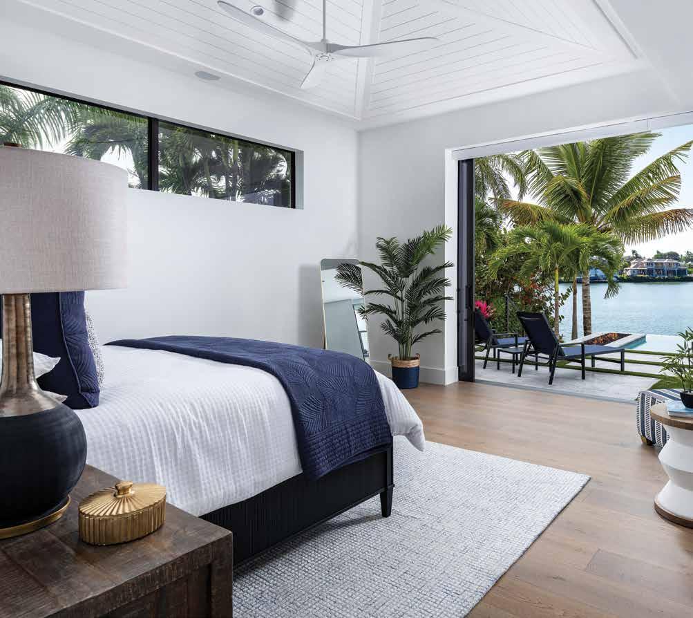 Liz Brown, Design Director at Calusa Bay Interior Design, draws her inspiration from Southern California estates, incorporating an elegant coastal ambiance perfect for Naples living. “We’ve moved beyond the typical coastal palette of blue and white, opting for natural tones with wood accents and pops of black,” details Brown. The design ethos extends to every detail, from the exterior’s stone cladding and black accents to the sophisticated oak casings framing each interior doorway, enhancing the home’s contemporary feel. “Our craftsmanship in woodworking truly sets us apart, bolstered by Matt Knauf’s extensive expertise as a carpenter by trade and innovative approach,” says Nick Radick, Sales and Marketing Director of Knauf-Koenig Group. u