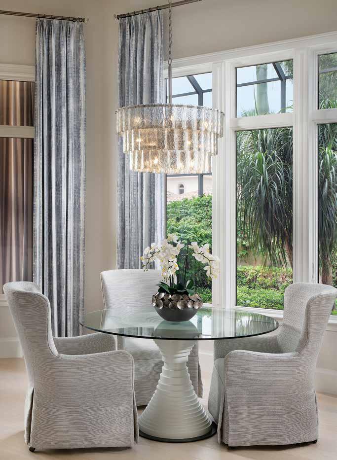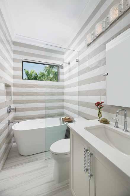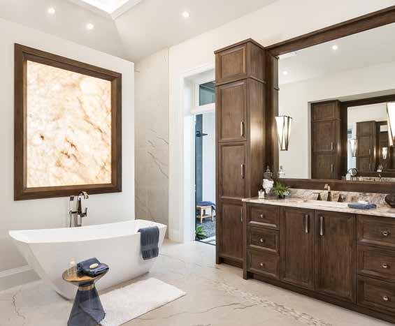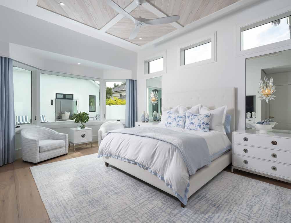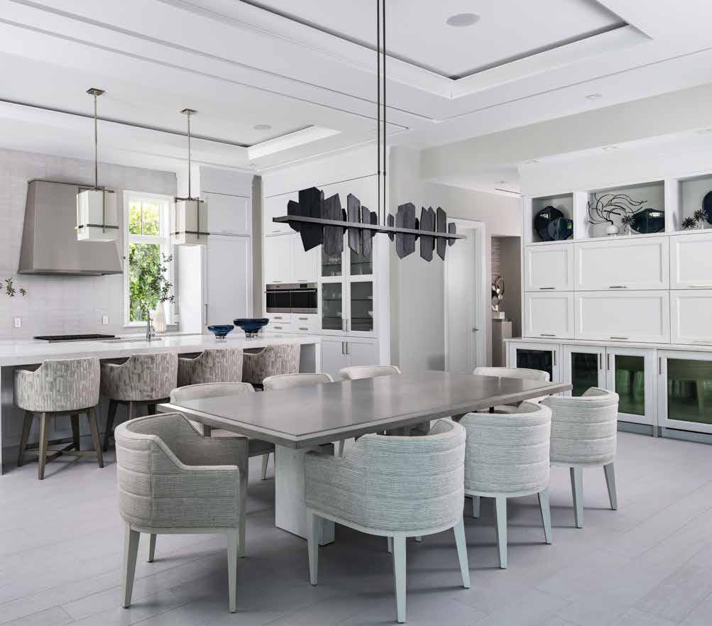 And those areas appeal to a Naples audience as well. In conjunction with Laurie Walter, Owner of Cardamon Design, the team delivered on the promise of luxury. “This is a fully curated package with furnishings, custom lighting, window coverings, artwork, and more,” Raymond says. The kitchen features high-end appliances from Fuse Appliances and Crystal Cabinet Works cabinetry from Naples Kitchen & Bath, of course. The team also partnered with Design Works, Ferguson Bath, Kitchen & Lighting Gallery, and Wilson Lighting for the luxury finishes throughout. u