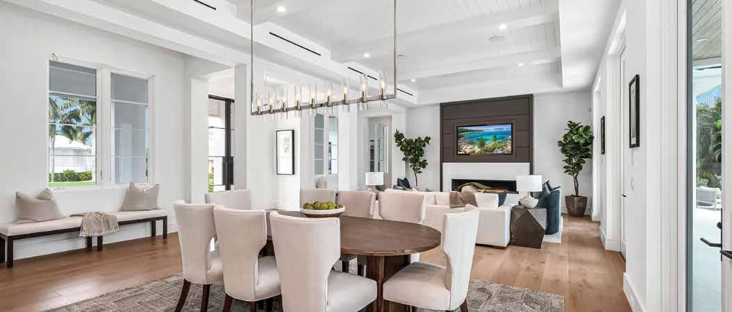 TTucked away in a serene waterside location within Pelican Bay, this $12 million estate breaks from the traditional single-story style with its twostory design, enhancing views of both the lake and golf course. “The collaboration of Stofft Cooney Architects, Knauf-Koenig Group, and Calusa Bay Interior Design not only elevates this property but significantly enhances its appeal to discerning buyers,” states Taber Tagliasacchi, P.A., Broker & Owner of Calusa Bay Properties. As seasoned experts in the Naples luxury market, this team has reshaped Pelican Bay for over a decade, bringing a breadth of knowledge and exceptional craftsmanship to each project.