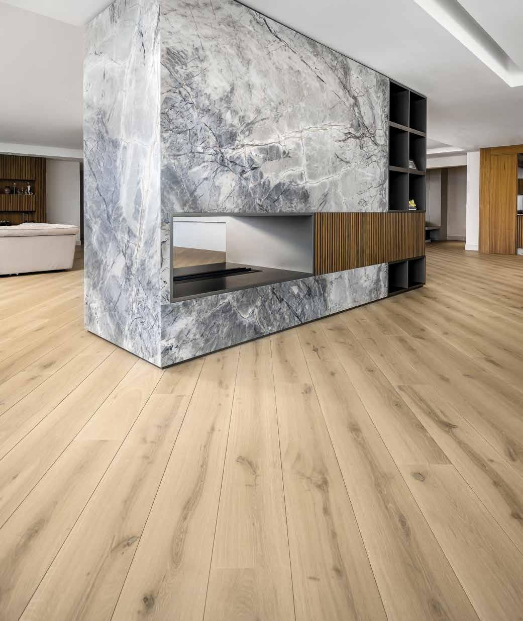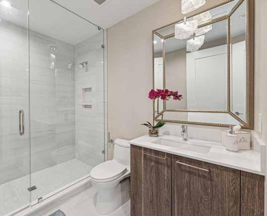 The design team has crafted a stunning entryway featuring impactful lighting and mirrors that enhance the sense of space. A custom fireplace wall adorned with Dolomite marble tile in the family room adds character and luxury. Throughout the condo, sensational custom lighting brightens every area. As McKinlay explains, “We curate all the finishing touches with each design we do.” Clients appreciate this approach because additional layers are often needed for a complete look after the main furnishings are in place. With their attention to detail, no space is ever left unfinished. n