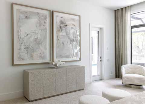 The home has been transformed into an elegant environment tailored to the homeowners’ lifestyle. Honors notes, “Clients can’t always envision how the layers of texture are going to work out and not look boring with a neutral palette. But they trusted Andrew and me right from the beginning. So, we were able to run with all our ideas, which was amazing, and I think that’s ultimately why it came out so wonderful.” n