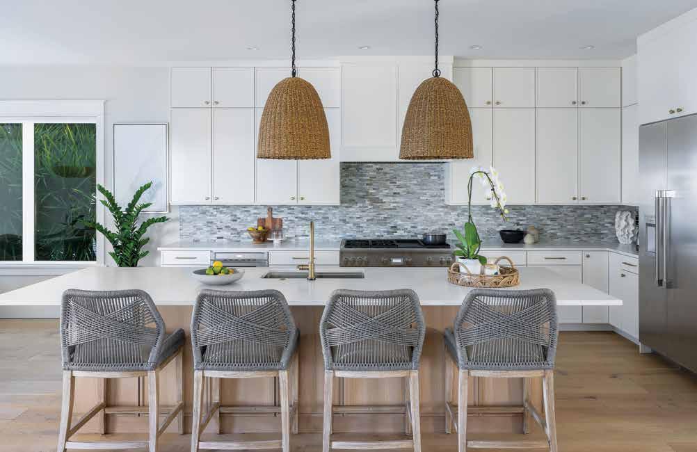 The overall design presents a refined interpretation of coastal living. “There’s a very neutral coastal palette,” Smith says. “They definitely love blue, so we wanted to use pops of it throughout, with the overall style being calming and sophisticated.” n