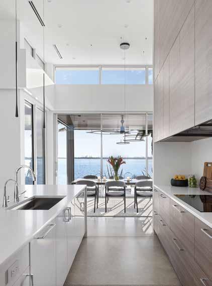 “My goal is to keep the interior design true to Mark’s architecture and make it feel like one,” she states. “The interiors reflect the architecture, which in modern contemporary design focuses on less is more.” n