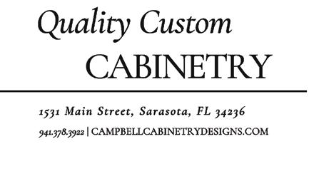 SARASOTA ARCHITECTURAL WOODWORKING Extraordinary quality Excellence in woodworking Exceptional customer service www.SAWW.us | 941.684.1614 6110 Clark Center Avenue, Sarasota Showroom open by appointment We proudly deliver high quality cabinetry and architectural millwork, exceptional project management and outstanding customer service. Call us today. Your stressfree construction experience awaits you ... SARASOTA ARCHITECTURAL WOODWORKING