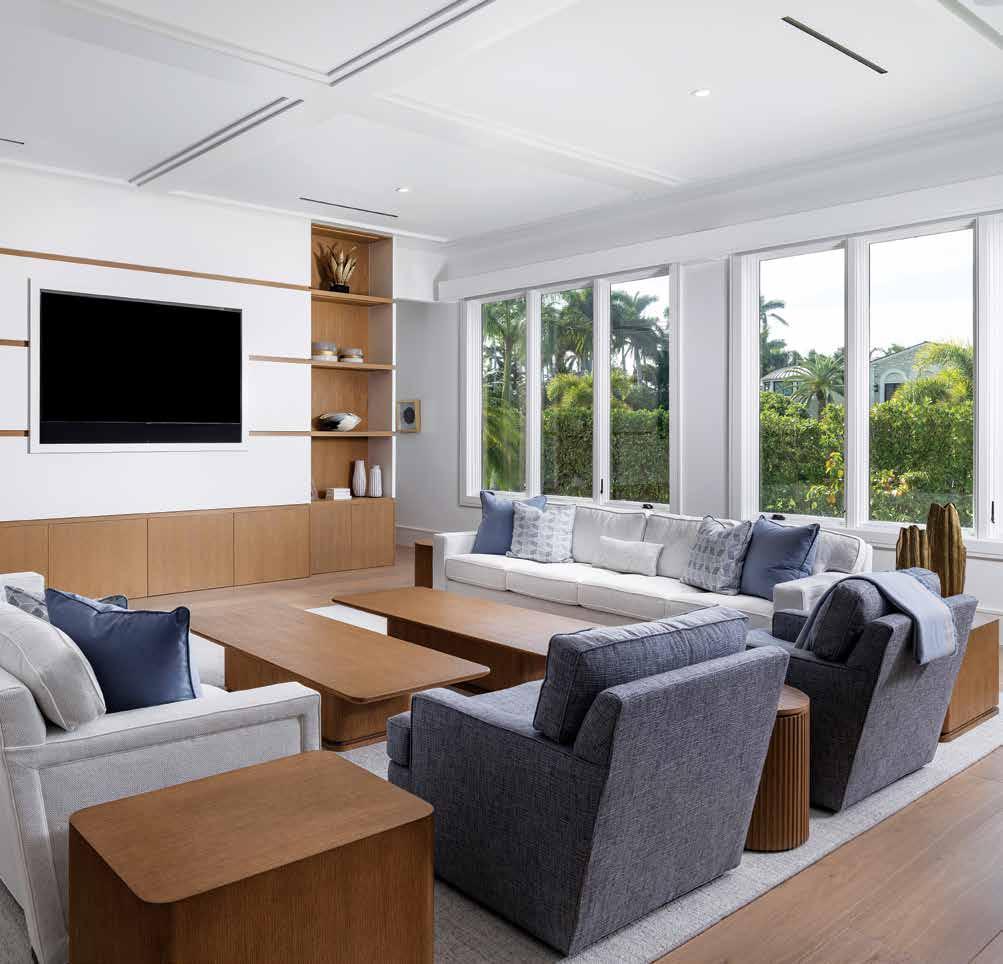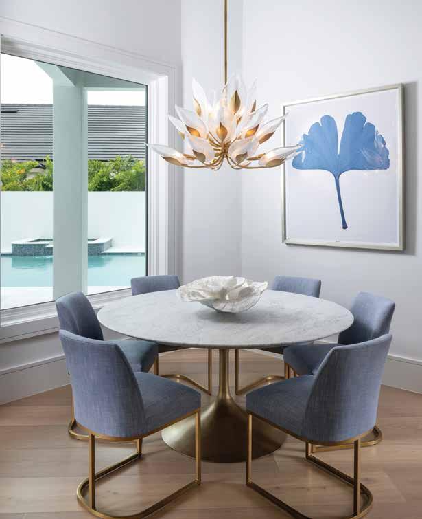 “I added a beautiful striated white granite to the front entry surround,” Lyons says. It has a light texture that lends sophisticated dimension without adding decorative elements such as columns. We really modernized the front entry, creating a stunning arrival at the front door.” This new elegant coastal design is a sophisticated twist on the typical Florida look. u