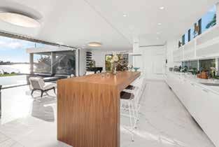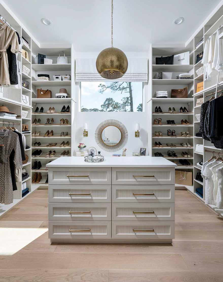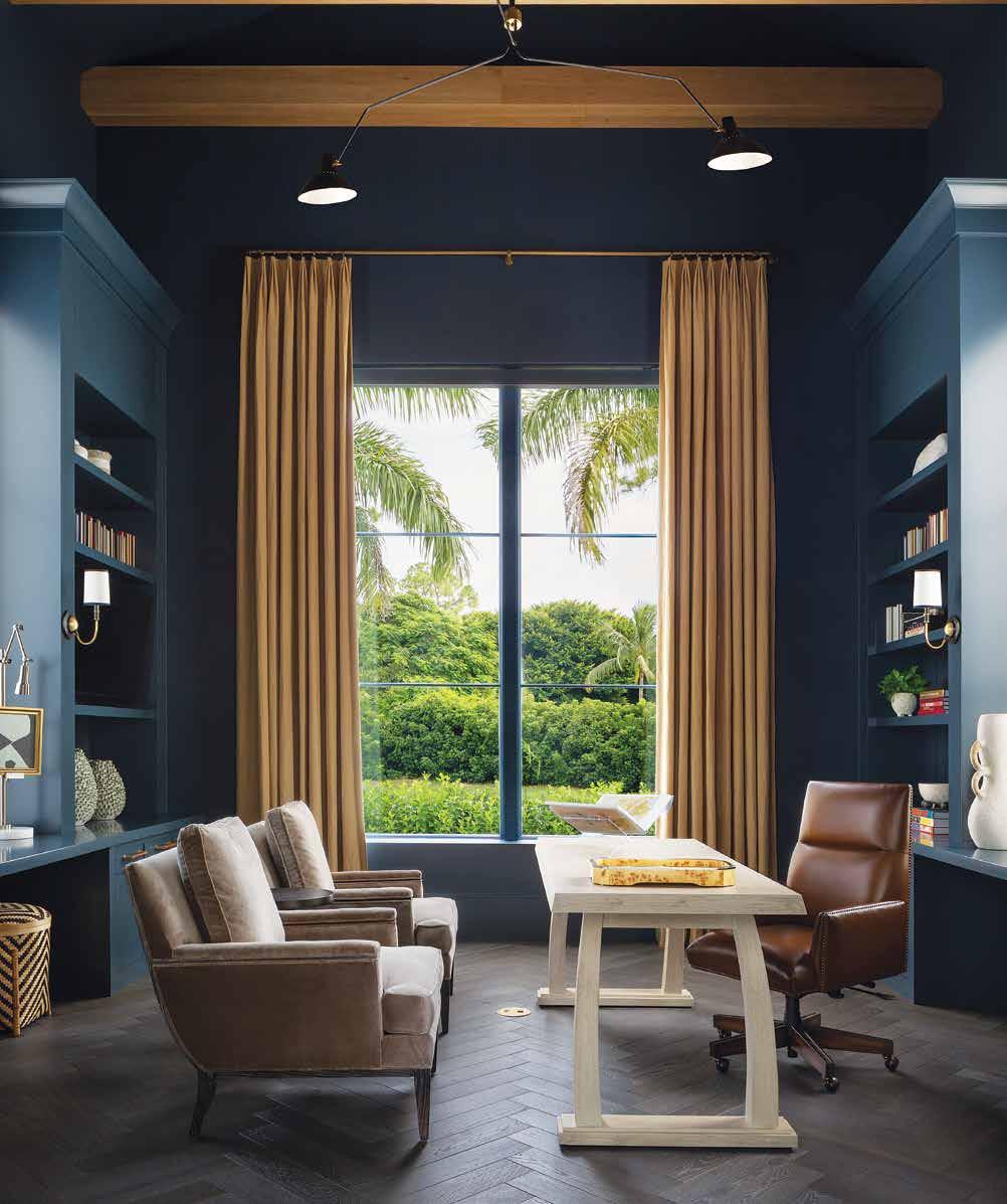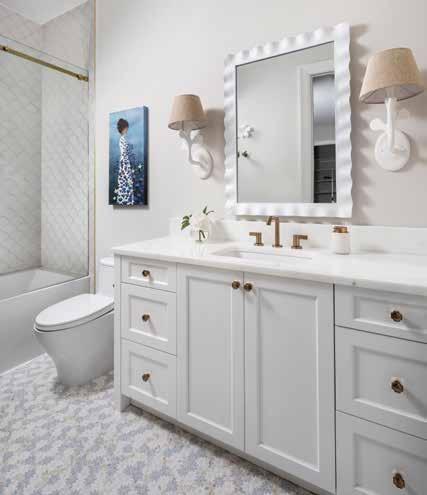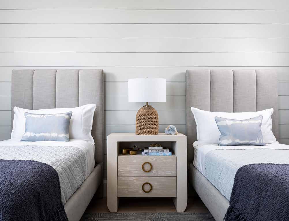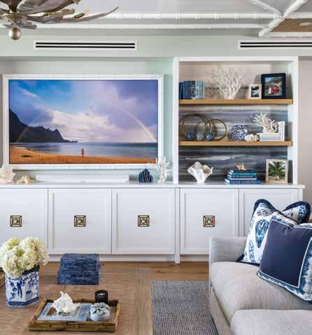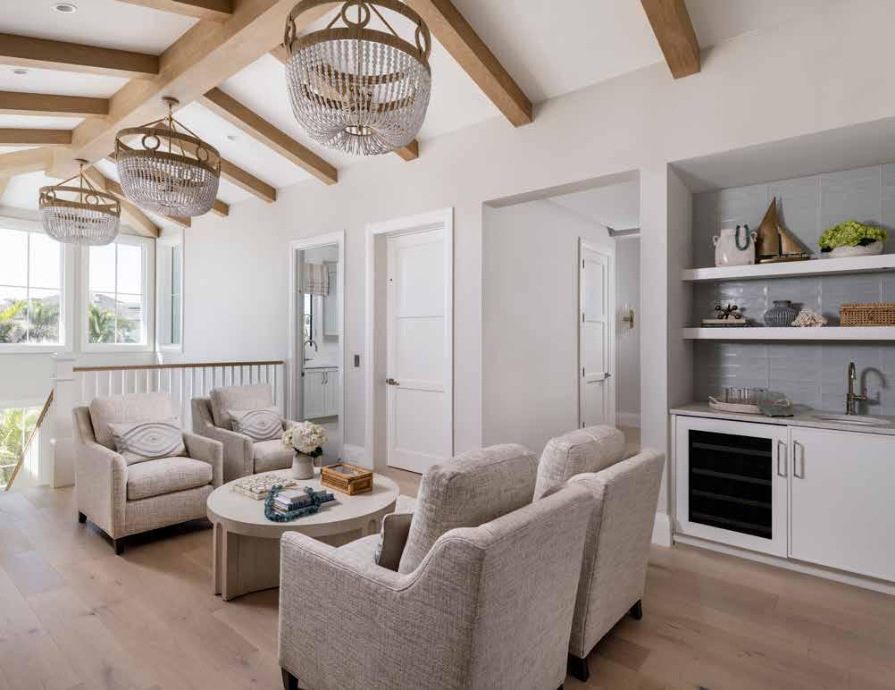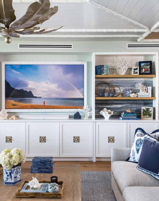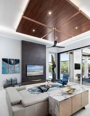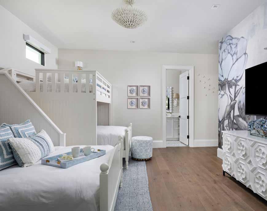 This property has exceptional water access and views, so the outdoor elements are equally important. McHenry curates destinations — from turf areas for play to tranquil fire bowls around the vanishing edge pool for ambiance into the evening. For the avid fisherman, Abad hooks every need on the first pass to design a fishing pavilion with ample storage, an ice maker, and a private bath — all linked to the dock by a gently sloped ramp that underscores the home’s practical luxury. With every challenge met, the house is both a fisherman’s dream and a family’s coastal paradise. n