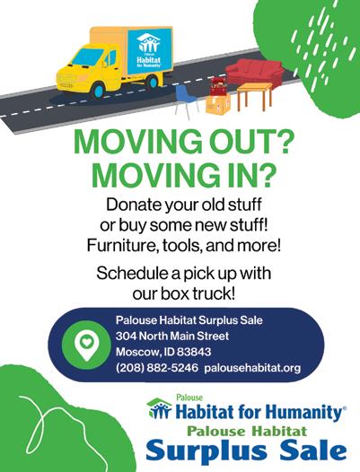Schedule a tour today! egeral.com • 509.758.5260 Life is best lived with people who deeply care about you. At Evergreen Estates, everyone is family, and the relationships built are everlasting. – DAVE WEATHERLY EVERGREEN ESTATES RESIDENT I am happier here than I was at home. Thank goodness for Evergreen Estates. Quilt SQuilt Shop hop IS SEASON... FALL IN LOVE WITH NEW FABRIC & NEW DESIGNERS! 1500 Levick St, Moscow, ID LOCAL LOCAL W W W . R E B S F A B S T A S H . C O M PRECUTS, YARDAGE, QUILT KITS, NOTIONS, & MORE ONLINE OR IN-STORE