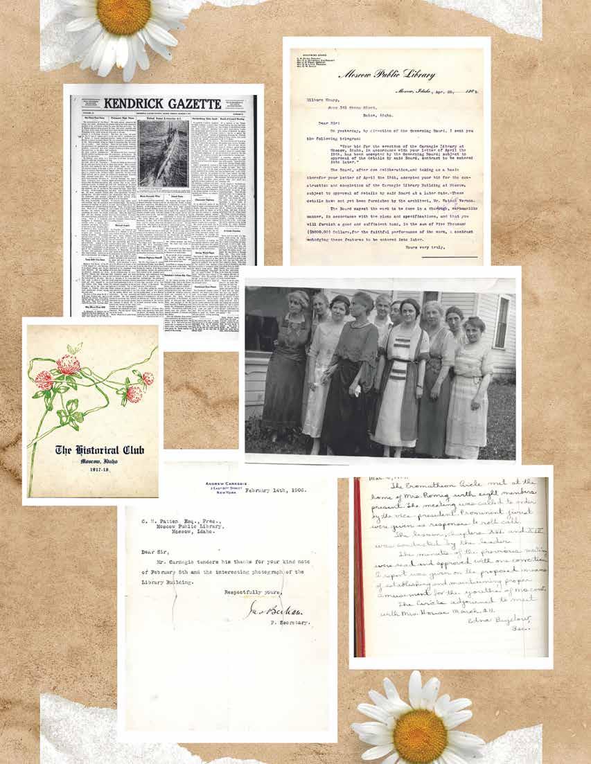 It was not unheard of for the groups to work together on larger projects that required wider outreach. One of the well-known projects two of Moscow’s women’s groups collaborated on was the construction of the Moscow Public Library. It began when the Moscow Free Library and Reading Room was established in 1901 and held meetings on the second floor of the Brown Building. The organization held an extensive library that continued to grow. Two of the local women’s groups, Pleiades Club and Moscow Historical Club, took notice of the lack of space and that there was a need for a public library in a central location. Three members from each organization, along with a city council member, formed the library board and set their sights on fundraising. Although the community was donating to the cause, there were not enough funds for the new building. To reach the fundraising needs, the Carnegie Library Endowment Fund was contacted in 1903. After a building site was purchased, as suggested in the reply, Carnegie provided $10,000 as promised. In 1905 the city voted in favor of a permanent tax to support the library by at least $1,000 per year. Construction began the same year, reaching its completion in 1906 for under $10,000. Plans to move into the new library were thrown awry when the University of Idaho’s Administration Building burned down and the-