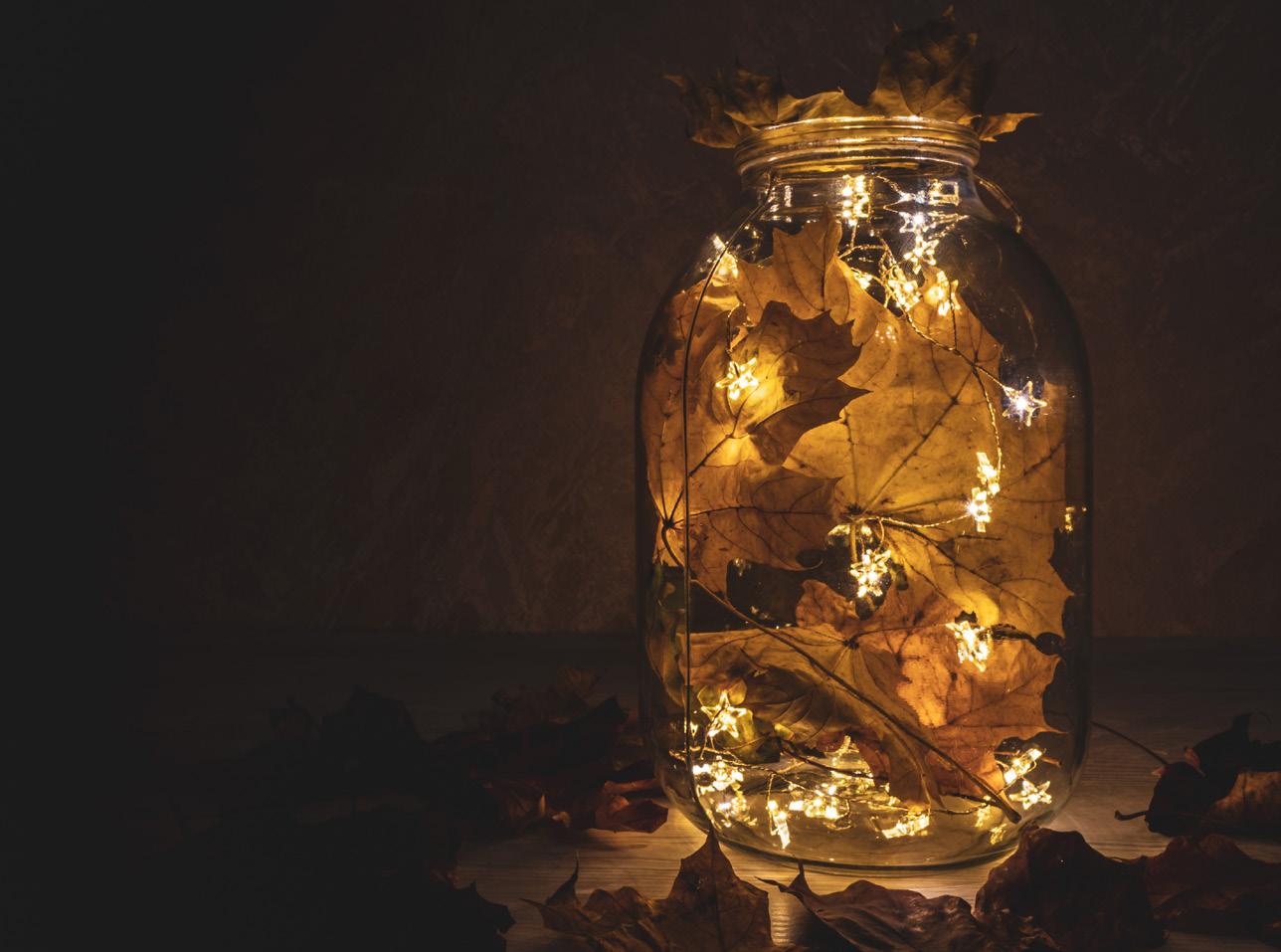 Using a mason jar, a small candle, and leaves, you can make a beautiful lantern that screams autumn. With a bottle of Mod Podge, you can brush on a layer of glue to hold fallen leaves that glow with a candle's light. These mason jars create a wonderful fall ambiance and set the mood for a nice, relaxing evening watching your favorite Hallmark movies!