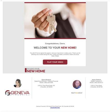 your clients. Resources to help our Real Estate Partners stay top of mind with their clients for the life of the loan This commitment make Loansaresubject borrowerqualifications,includingincome,propertyevaluation,sufficientequity home meetLTVrequirementsforrefinances,and creditapproval. Approvals subject underwritingguidelines,interestrates,andprogramguidelines. Approvals subject changewithoutnoticebased applicant’seligibilityandmarketconditions. GenevaFinancialLLCis actingon orat direction HUD/FHAor FederalGovernment.GenevaFinancial approved participate FHAprogramsbutthepro and performed GenevaFinancialLLC coming fromHUD GenevaFinancialLLC isan OpportunityLenderand Housing 3155 Chandler, 85248.AZ#0910215 Corporate:3155S.PriceRoad•Suite105 Chandler AZ 85248 Contact me today to discuss your options! TAKE YOUR LISTINGS TO THE NEXT LEVEL Single Property Websites Geneva Financial can create Single Property Websites to help you promote your listings in a clean, fresh, and easy-to-read format. One-clickopenhouseflyers •Communitydetailsbuyerswant: -Commute -AverageIncome -Demographics -Taxes -CostofLiving,etc. •Paymentandloancomparisons Propertyimages •Superusefulmappingtool One-clickschedulingforshowing withleadcaptureandautomated co-brandeddripcampaign Andmore! EasilysharethesitetoFacebook,Linkedin,Twitter andGooglewithasingleclick! Sharingthewebsiteonsocialmediagivesyoufantastic exposuretoyourseller’sdatabaseandwillhelptheseller seetheextravalueyouareprovidingtogettheirproperty sold. Digital Post-Close Email Campaign Birthday Email Campaign FOR LIFE FOR LIFE FOR LIFE Holiday Email Campaign