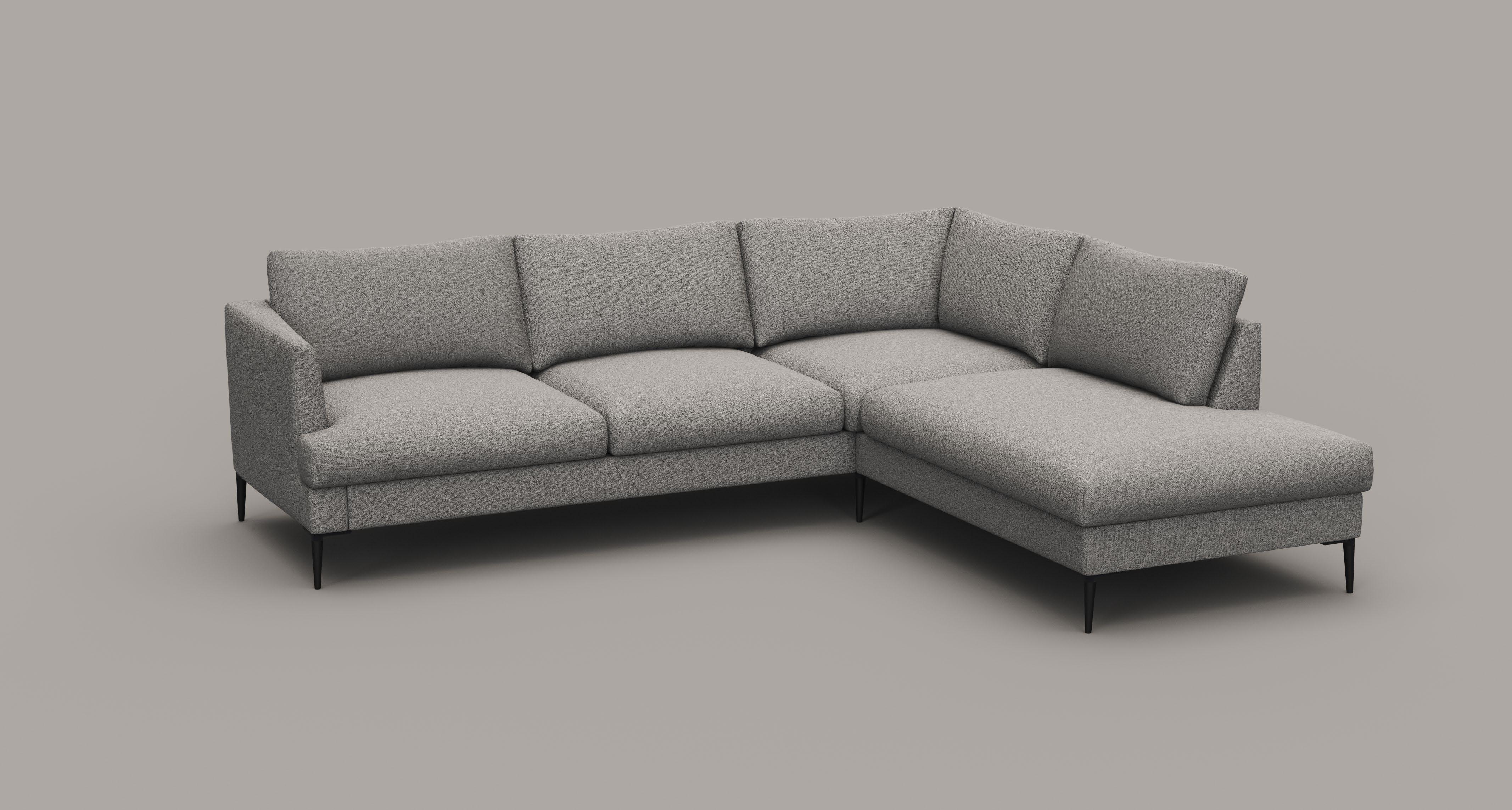 Loano sofa, combination 0061, 3 seater with open-end, Bellaria 1200 Stone Grey