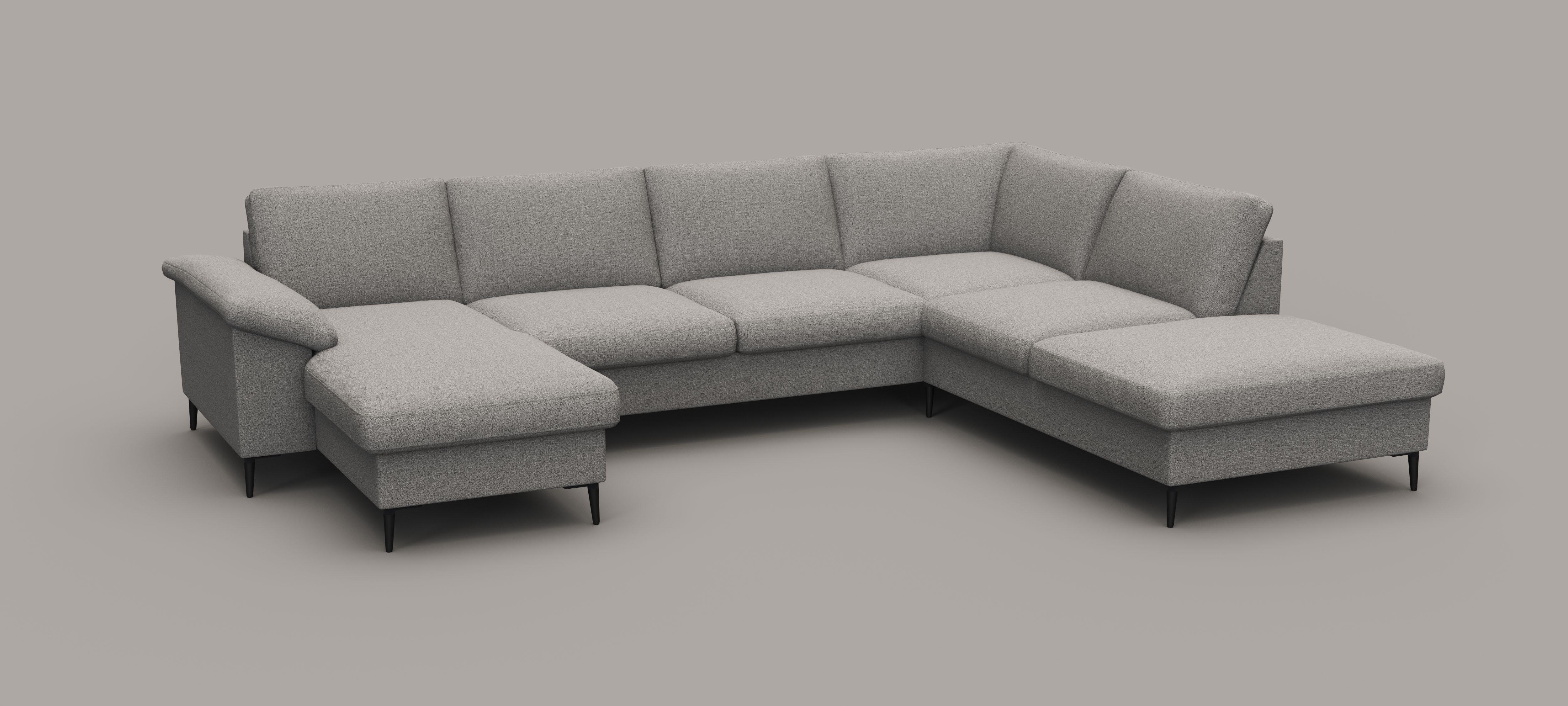 Lucera sofa, combination 9451, 1,5 seater with 1,5 chaiselong, Melina 1240 Grey Breeze