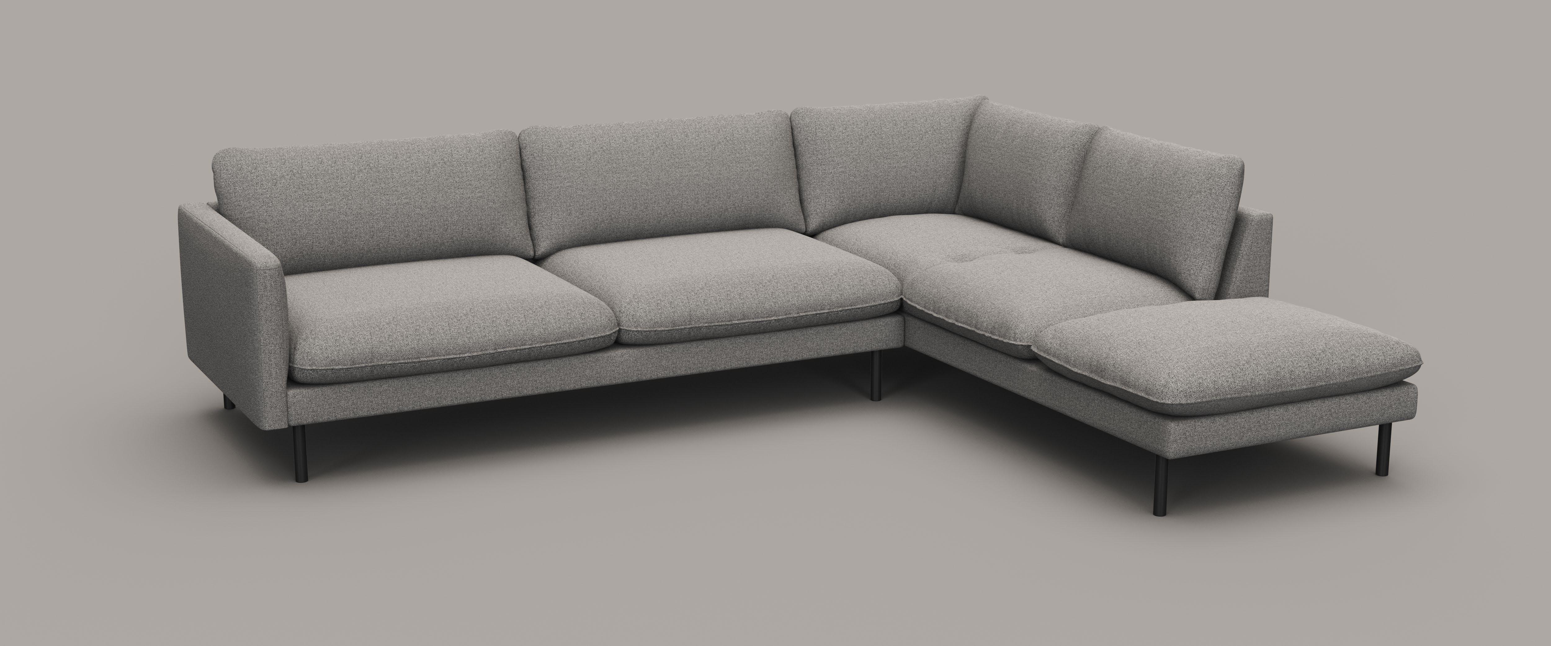 The frame of the Bolzano sofa is made from FSC® wood. The seat cushion consists of Cold Cured Foam, covered with chipped foam top. The loose back cushions consist of a core in foam and feather mix. The legs for Bolzano are available in black metal.