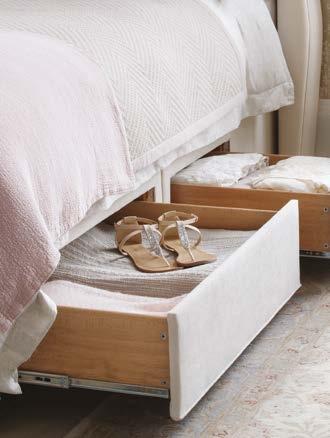 Standard-size drawers can be combined with smaller continental-size drawers for ease of opening next to bedside tables or winged headboards. These drawers have been designed to accommodate lightweight items, such as pillows, bed linen or clothing. We recommend a maximum weight of 20kg per standard drawer and 10kg per continental drawer.