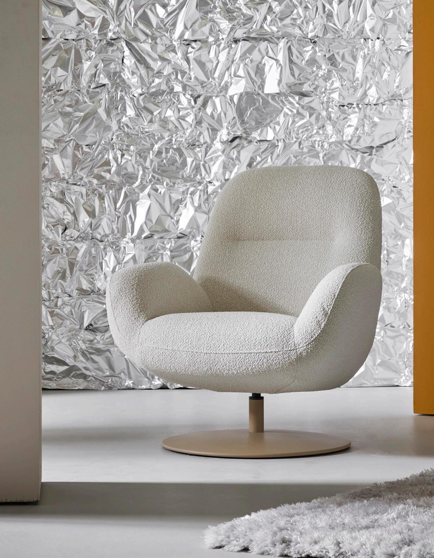 Fauteuil in actiestof Rhodos met schotelvoet in RAL-kleur (foto: Ecru)