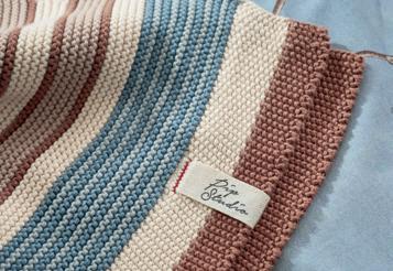 Bonsoir Stripe knitted throw - Blue 100% cotton 130x170 cm