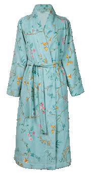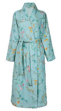 Les Fleurs bathrobe - Blue 100% cotton terry velours, printed