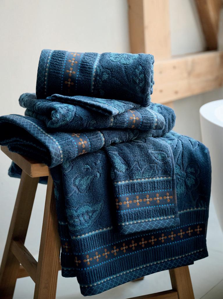 Les Fleurs towels - Dark blue 100% cotton terry velours, printed