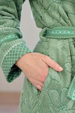 Soft Zellige bathrobe - Blue Grey 100% cotton terry jacquard