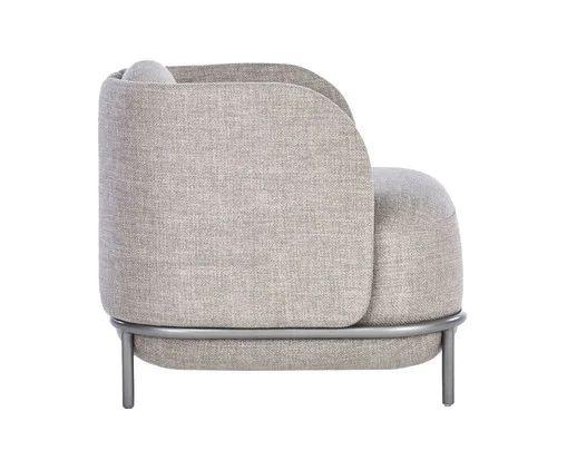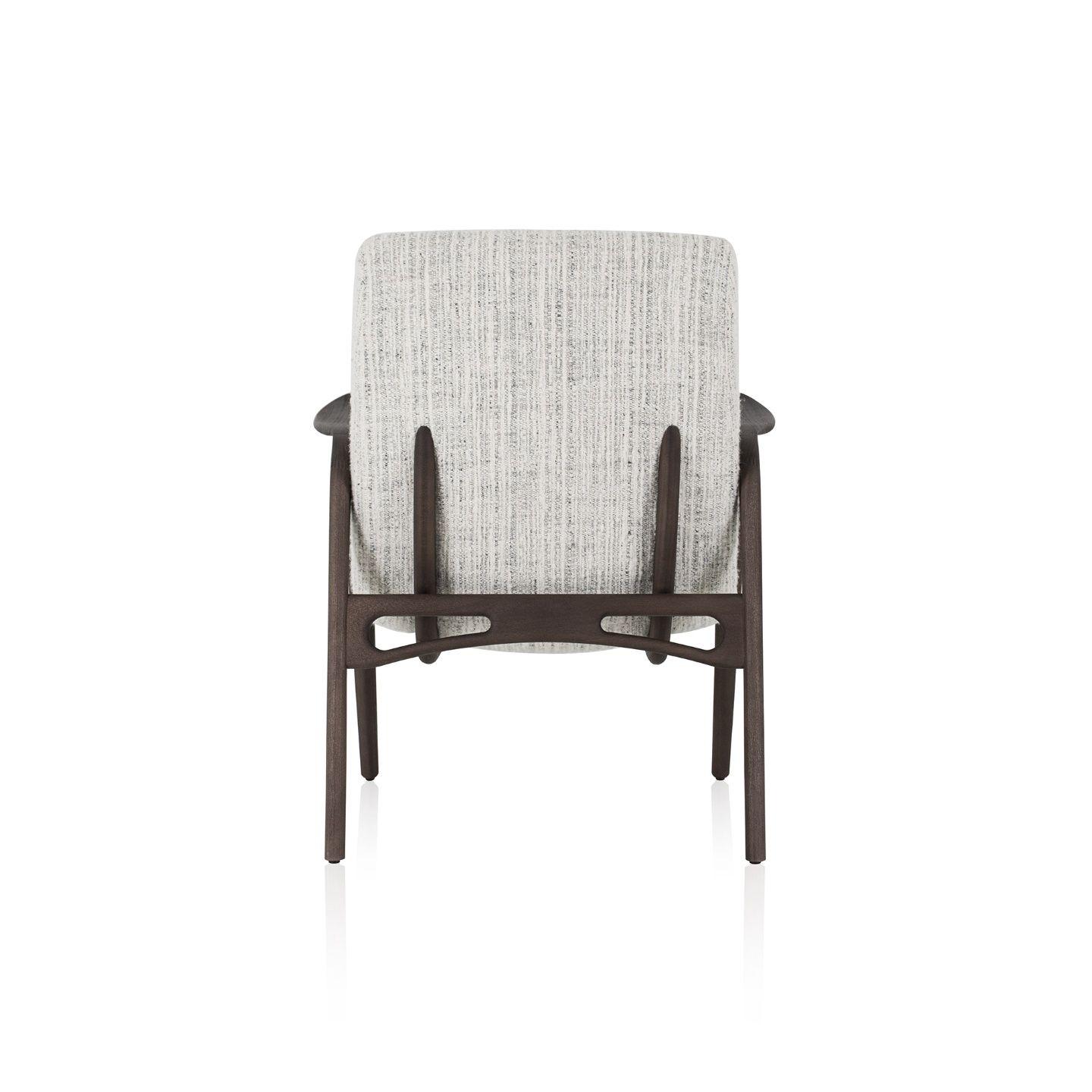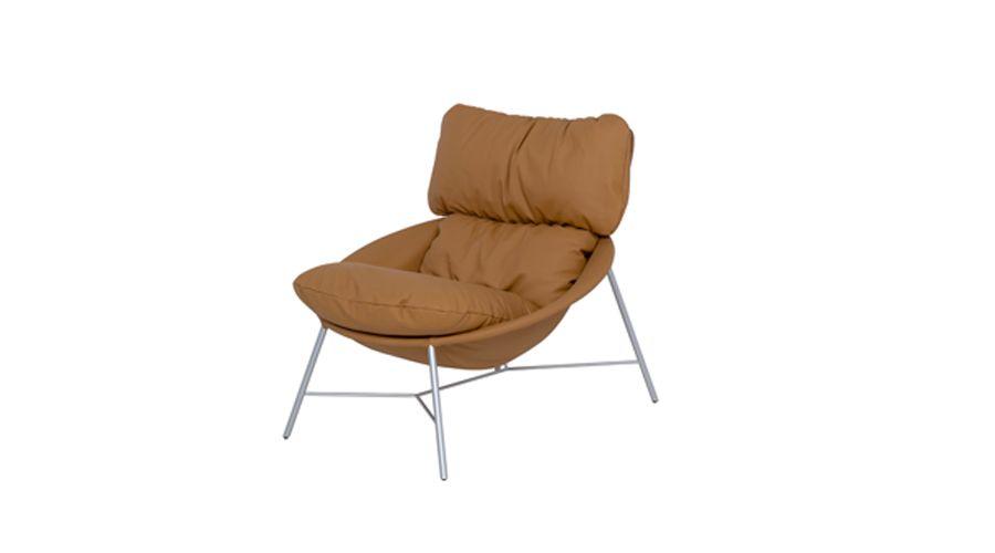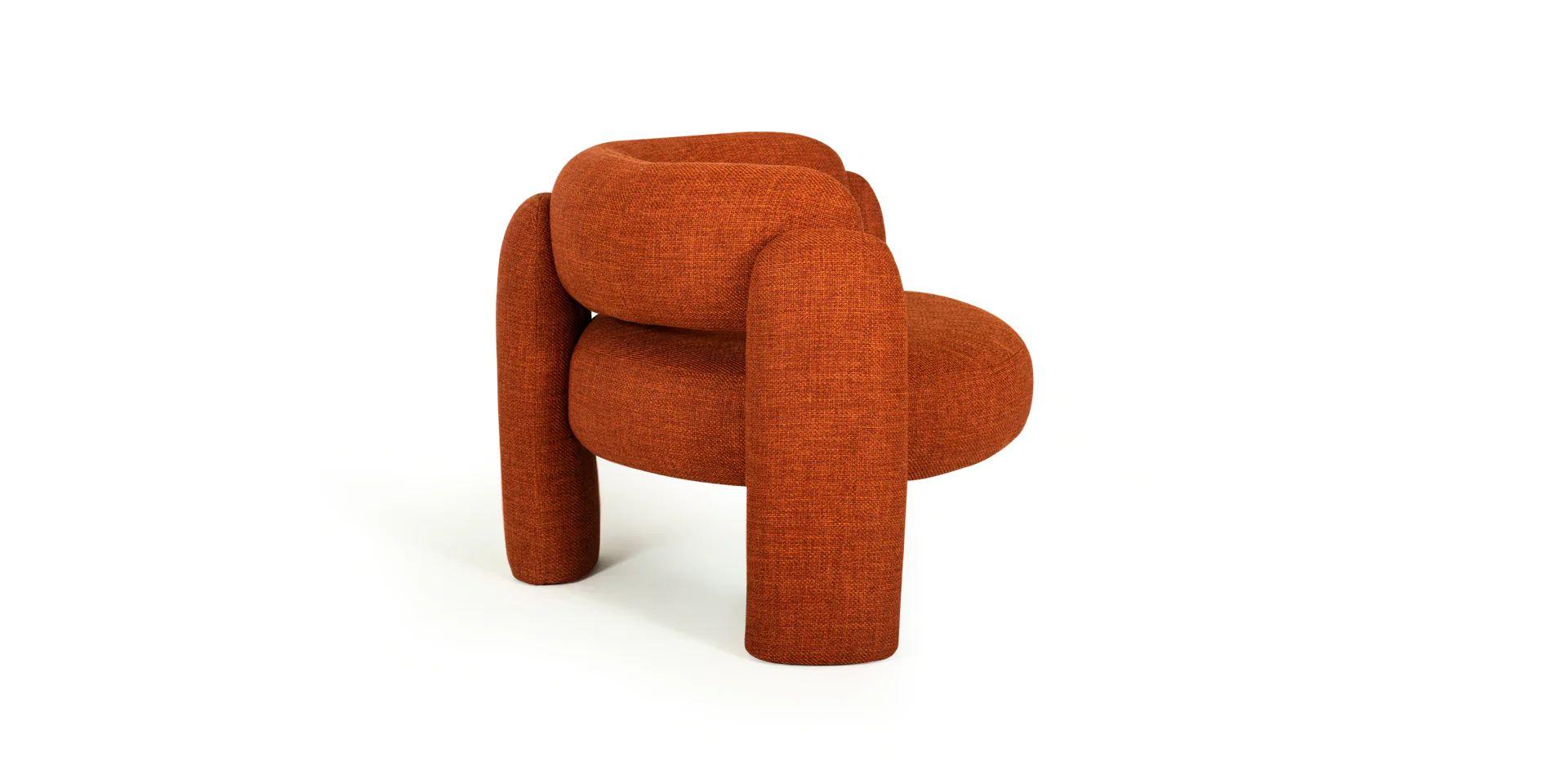 Seu desenho equilibra presença e leveza. Os volumes são generosos, mas contidos, permitindo que a poltrona se destaque sem se impor. O assento convida à permanência, enquanto o encosto envolve com suavidade, oferecendo conforto para momentos de pausa, leitura ou convivência.