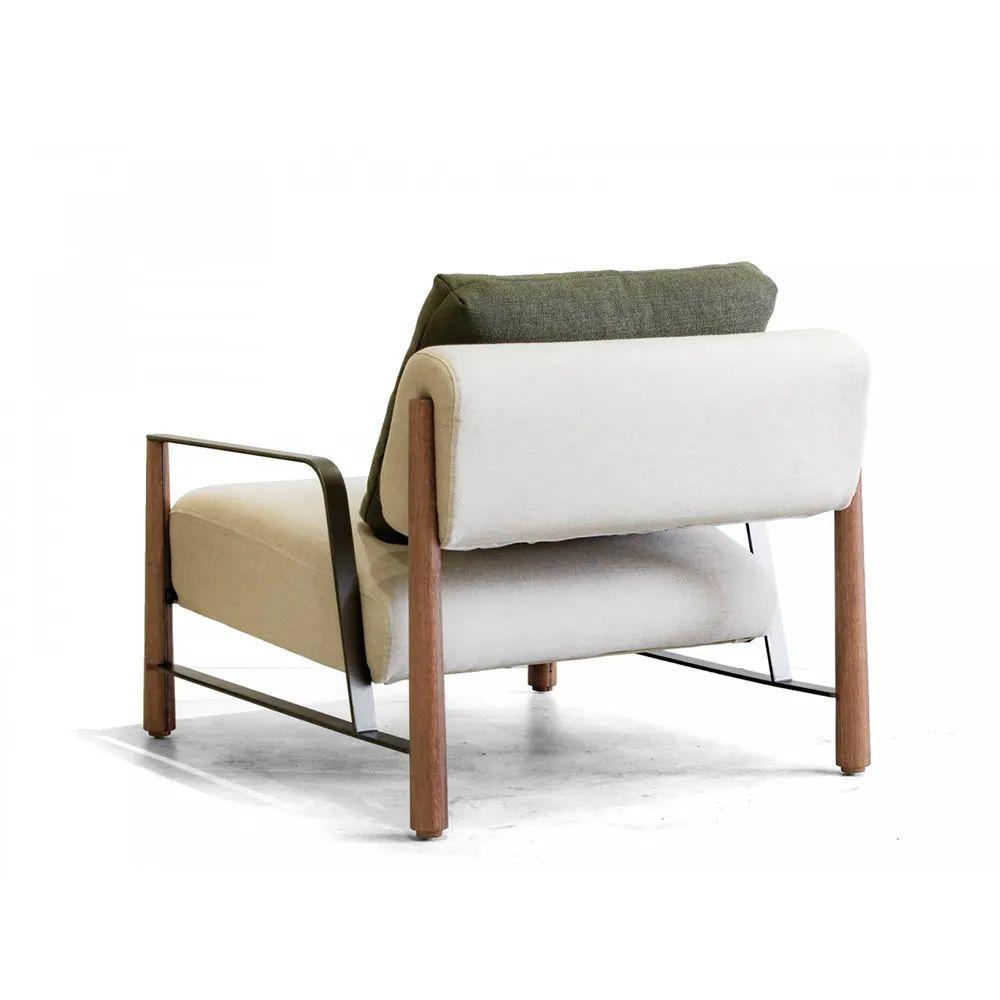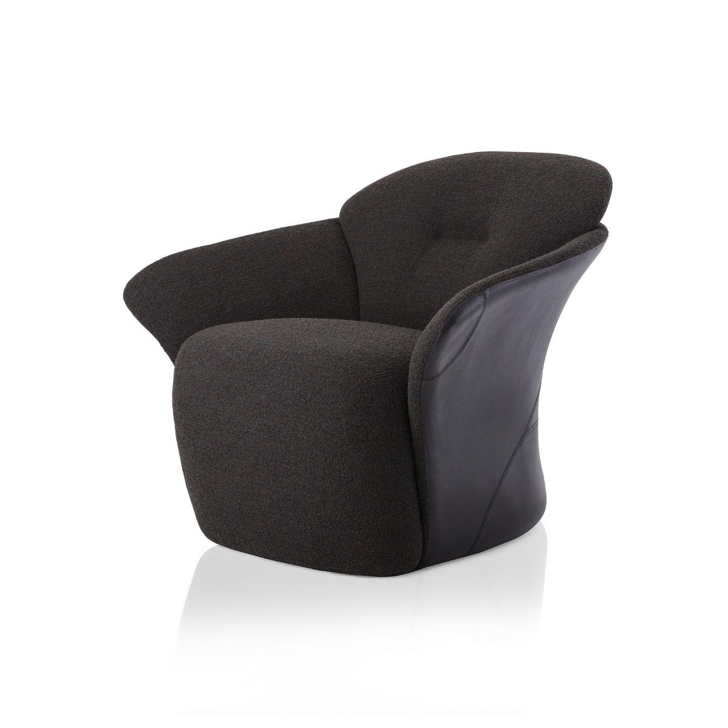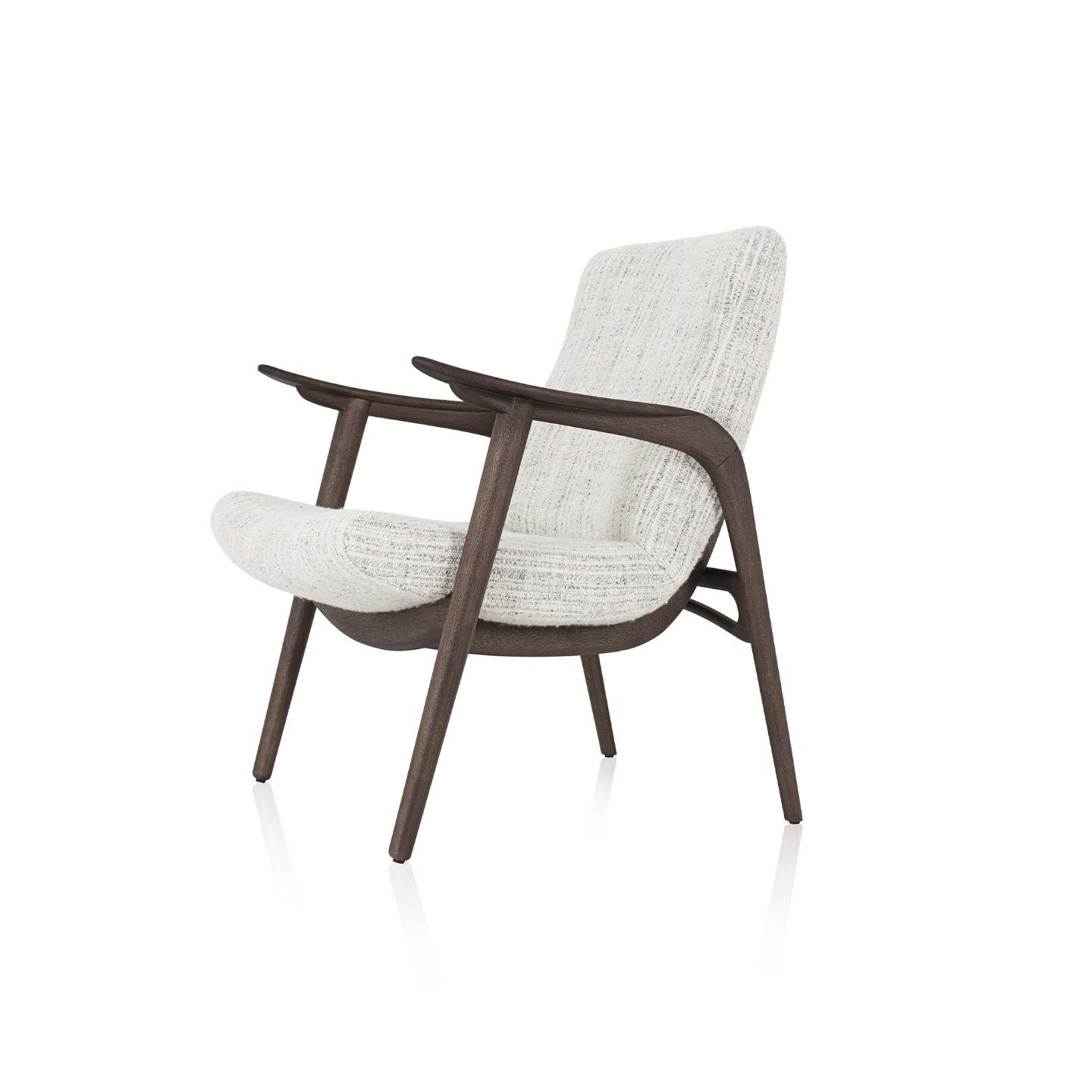 Seu desenho equilibra presença e leveza. Os volumes são generosos, mas contidos, permitindo que a poltrona se destaque sem se impor. O assento convida à permanência, enquanto o encosto envolve com suavidade, oferecendo conforto para momentos de pausa, leitura ou convivência.