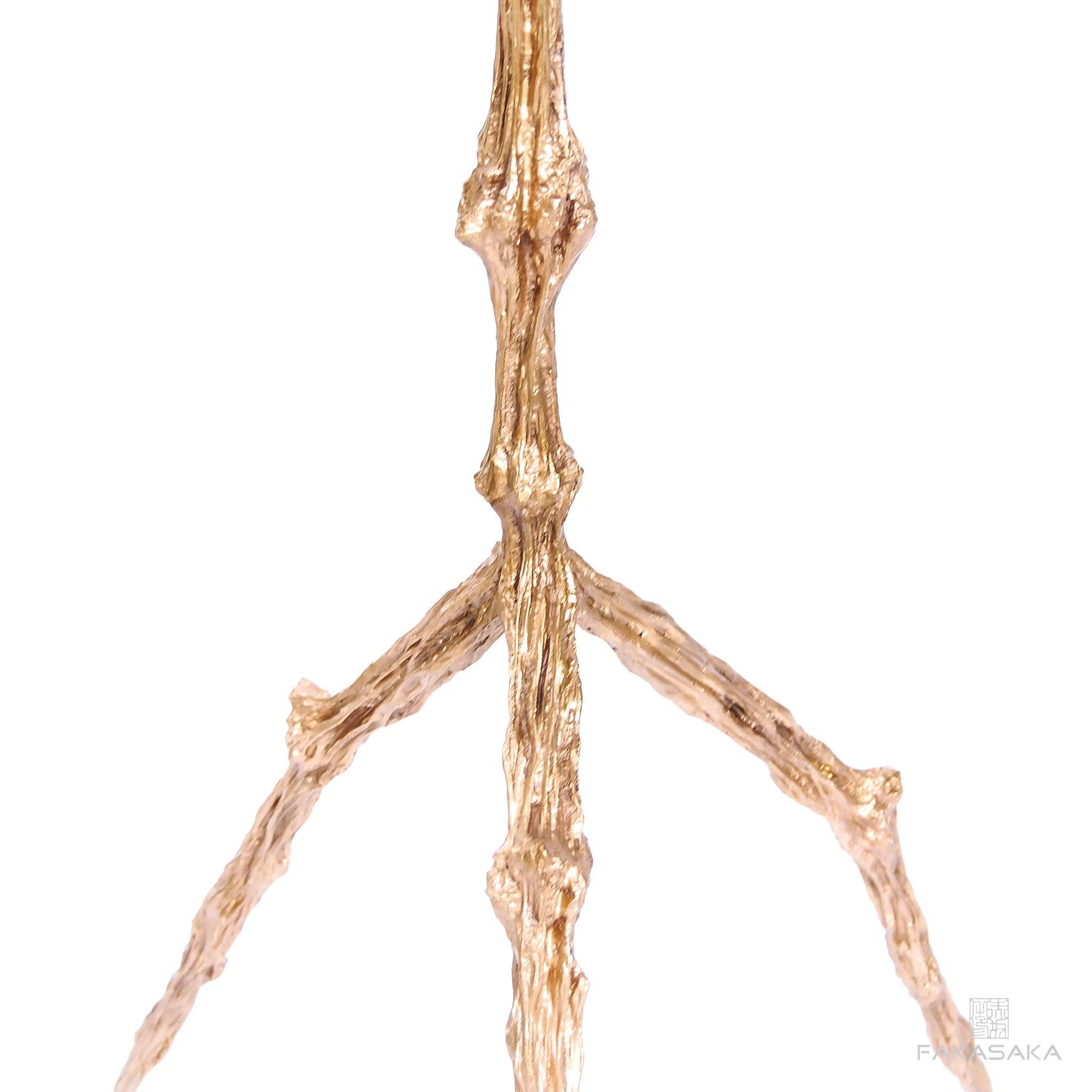 Tecido Fornecido, base em couro, pés pintados no metalizado marrom.