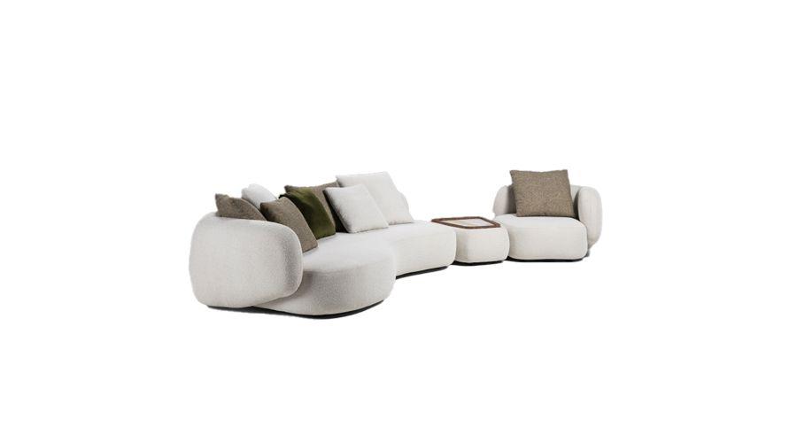 Seu desenho privilegia a fluidez. As linhas são suaves, sem rigidez, permitindo que o sofá se integre ao espaço de forma orgânica. O assento convida à permanência prolongada, enquanto o encosto oferece apoio confortável, adaptando-se a diferentes momentos do cotidiano — do descanso silencioso ao encontro.