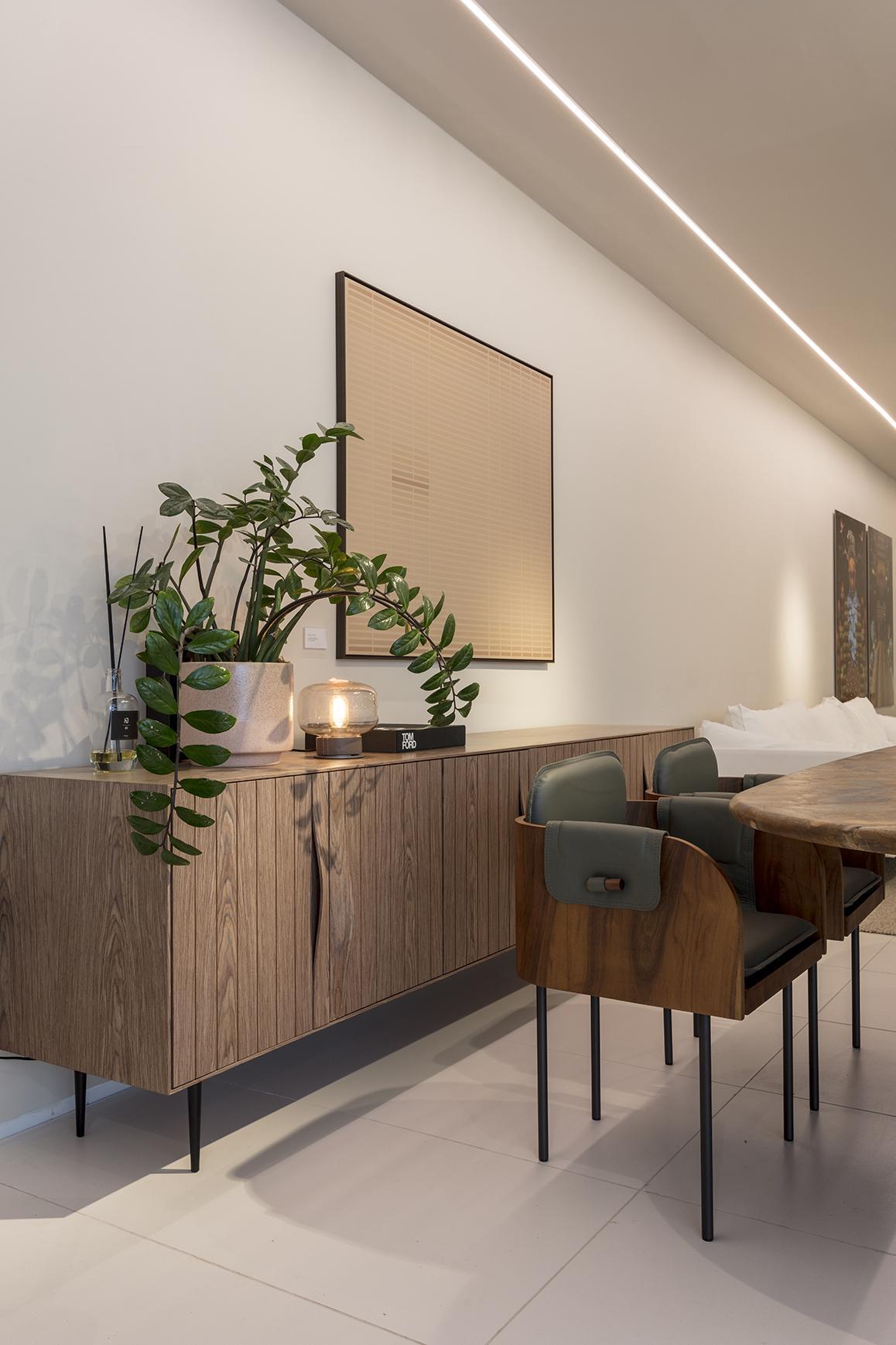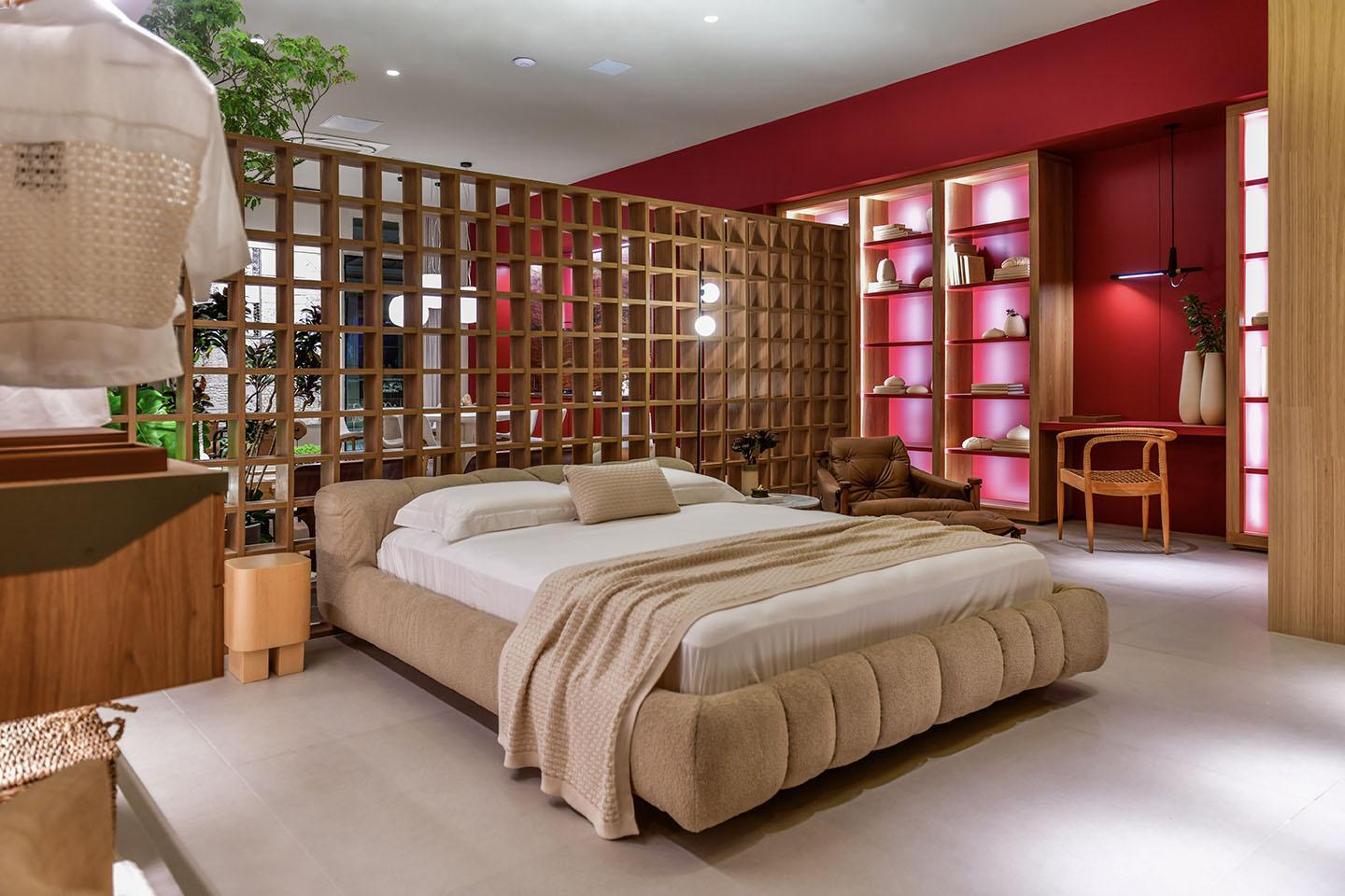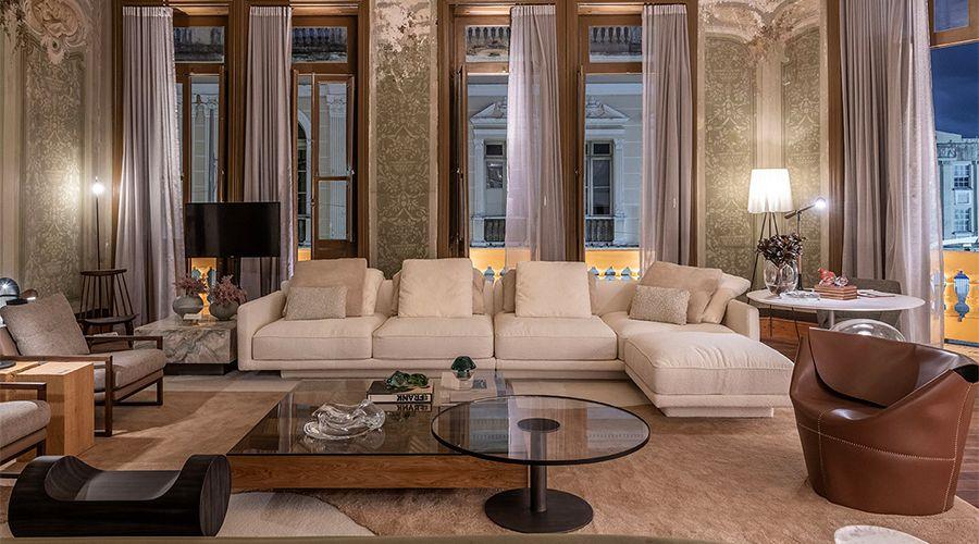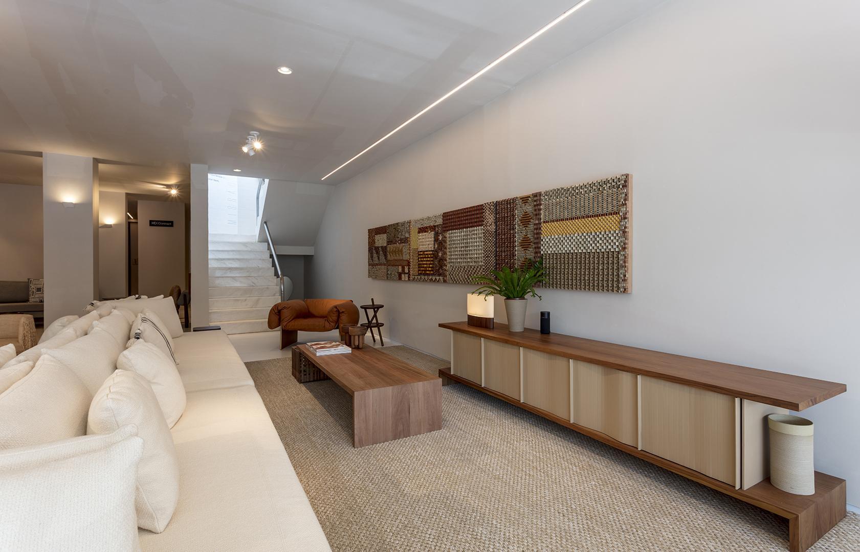 O sofá Francisco, que leva o nome do filho mais novo do designer, possui toda sua estrutura em madeira, num contraponto às almofadas usadas no encosto e nas laterais de forma casual.