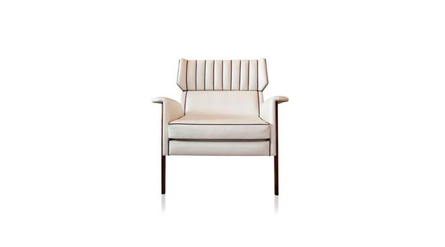 A poltrona FJN funciona como um abraço. Derivada do sofá FJN tem, no detalhe da alça, uma bela surpresa.