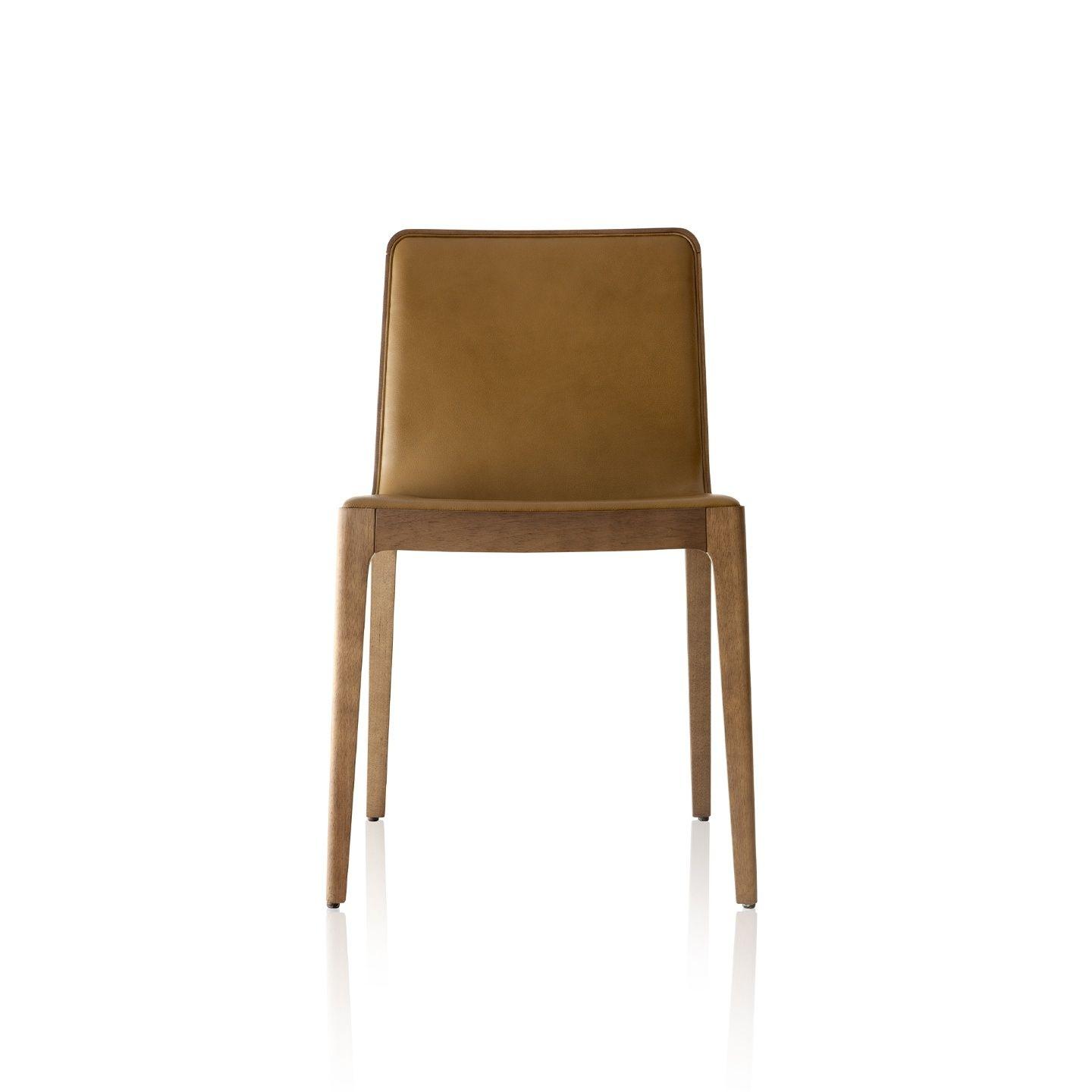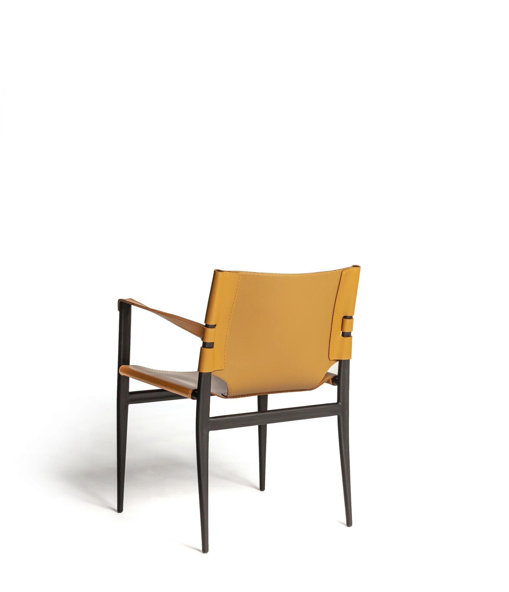 O harmonioso contraste entre as rígidas linhas dos apoios em lâmina natural e o aspecto maleável e orgânico do couro no assento define o design da poltrona Soft, que une conforto e estética.