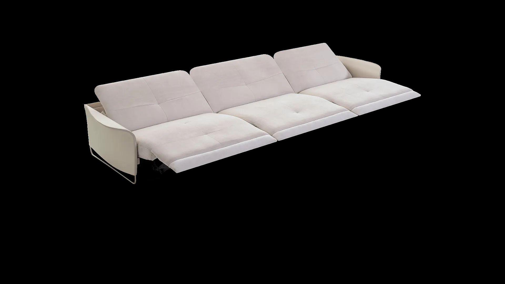 Sofá retrátil automatizado com movimentação de encosto e assento, sendo estruturada em couro natural e parte interna em tecido