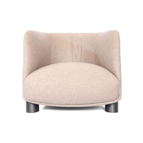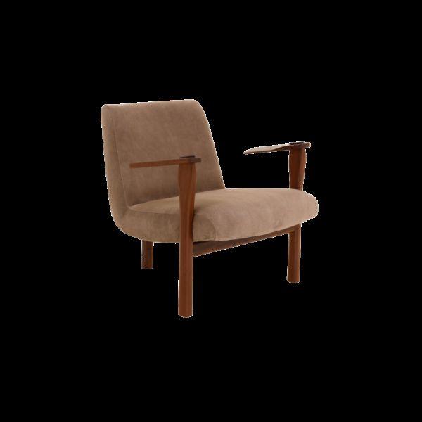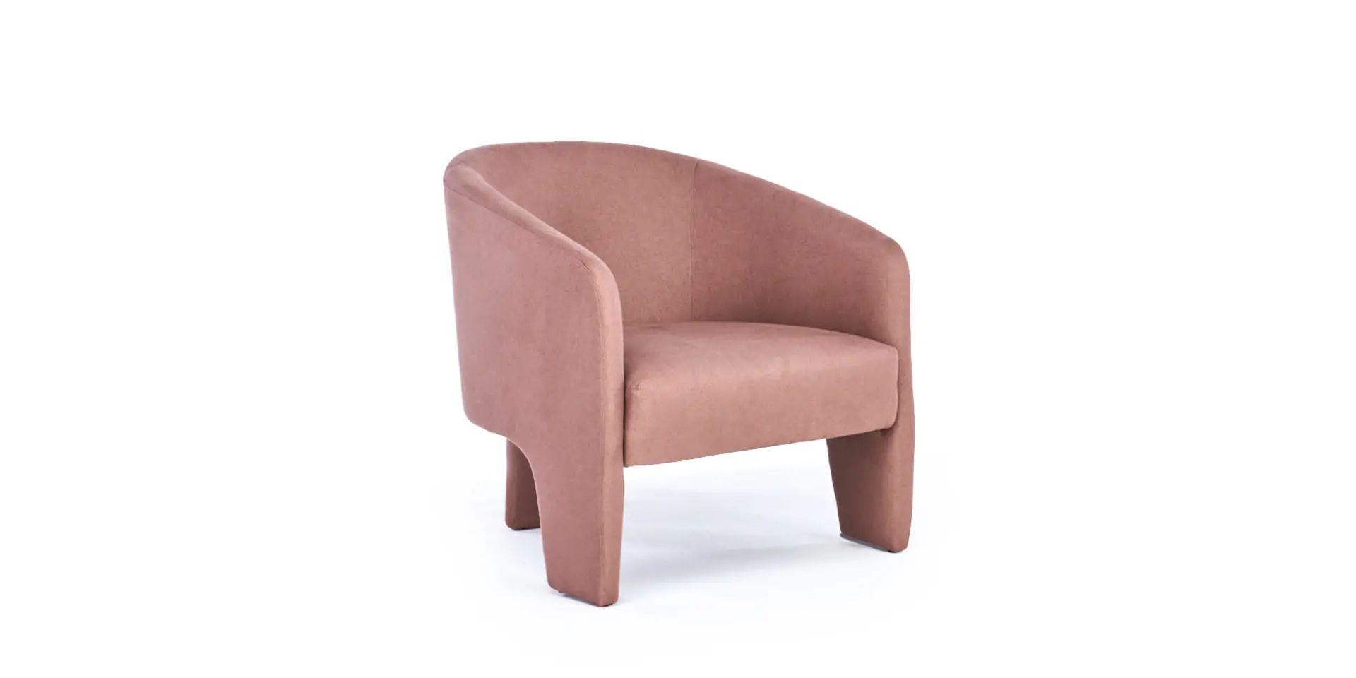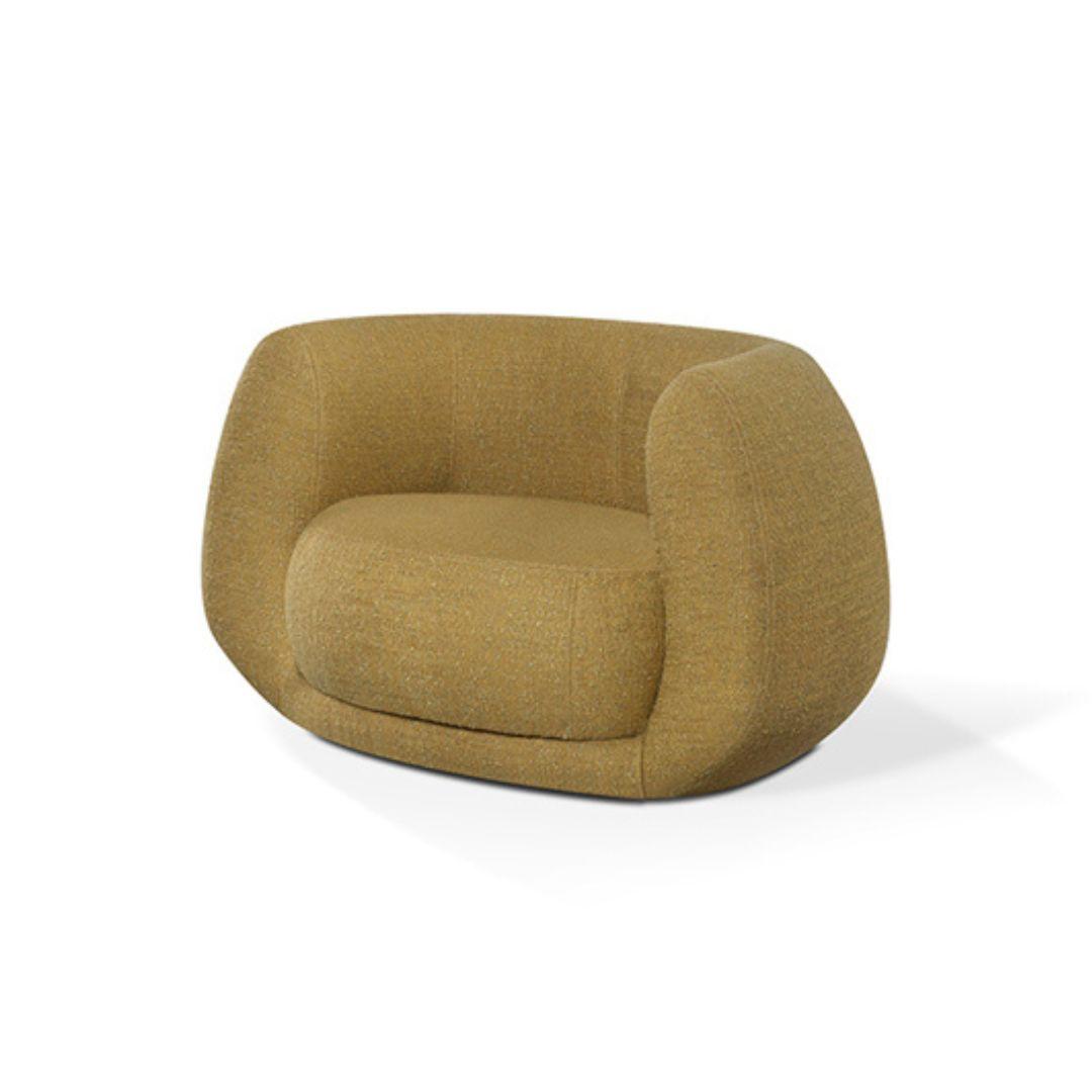Seu desenho equilibra presença e leveza. Os volumes são generosos, mas contidos, permitindo que a poltrona se destaque sem se impor. O assento convida à permanência, enquanto o encosto envolve com suavidade, oferecendo conforto para momentos de pausa, leitura ou convivência.