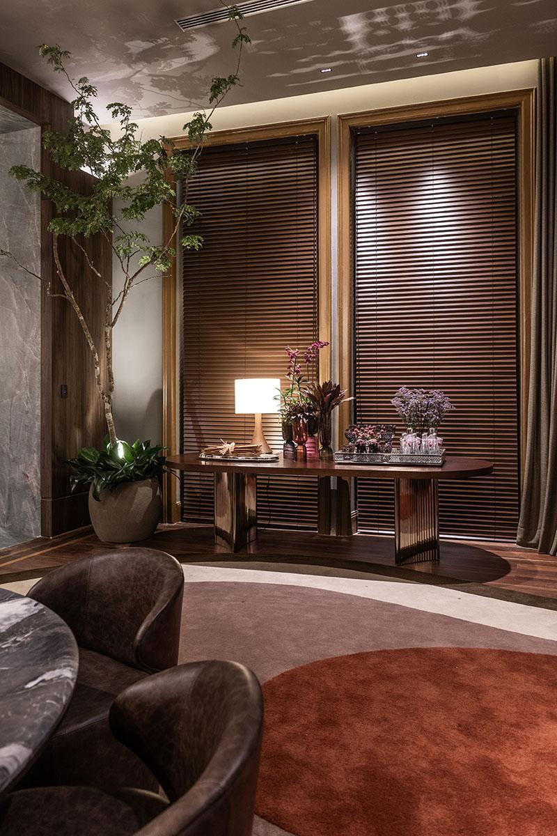 Mesmo sendo completamente estofada, a cadeira SUITE é esbelta, com curvas bem delineadas e desenho rico em detalhes. As costuras e tecidos estruturados, são aplicados como em vestidos de alta alfaiataria, e fazem com que tanto frente quanto o verso sejam valorizados e igual maneira.