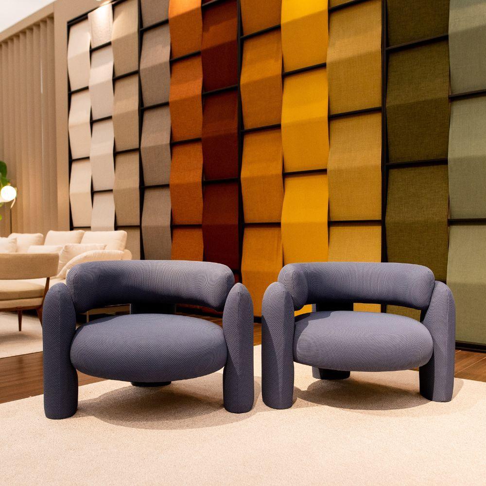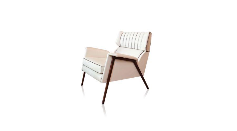 O formato em concha prioriza o conforto e o suas curvas traduzem o perfeito equilíbrio entre formas e volumes dos móveis de traços modernistas.
