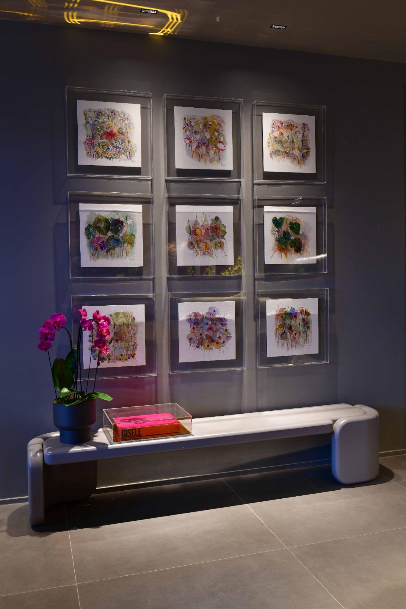 As designers Tina e Lui se inspiram na natureza para a criação dessa coleção. O espaldar se acomoda em forma de galhos de uma árvore e os estofados coloridos são como as flores desabrochando.