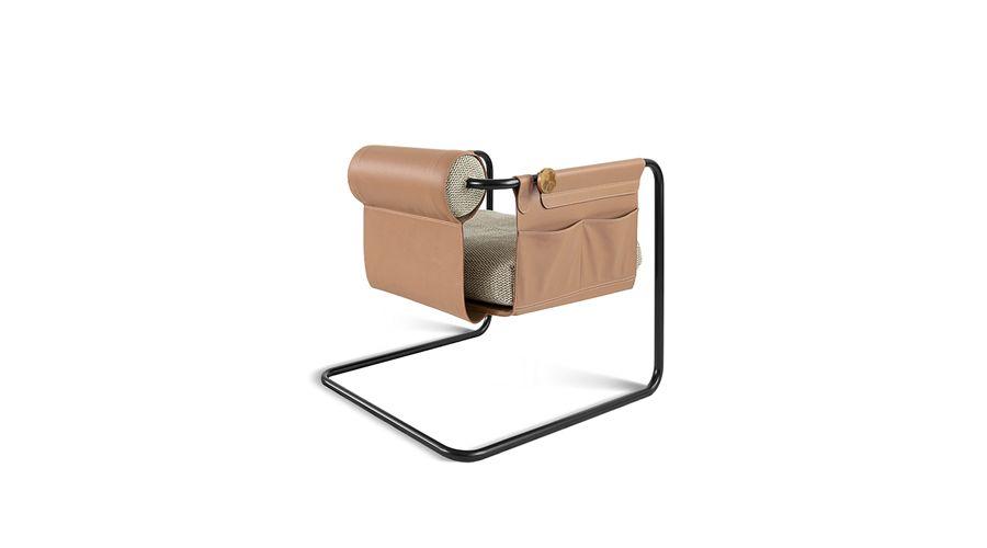 A poltrona FJN funciona como um abraço. Derivada do sofá FJN tem, no detalhe da alça, uma bela surpresa.