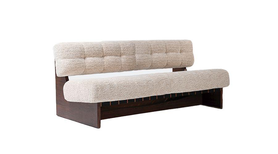 Estrutura em freijó e estofado no boucle cru.