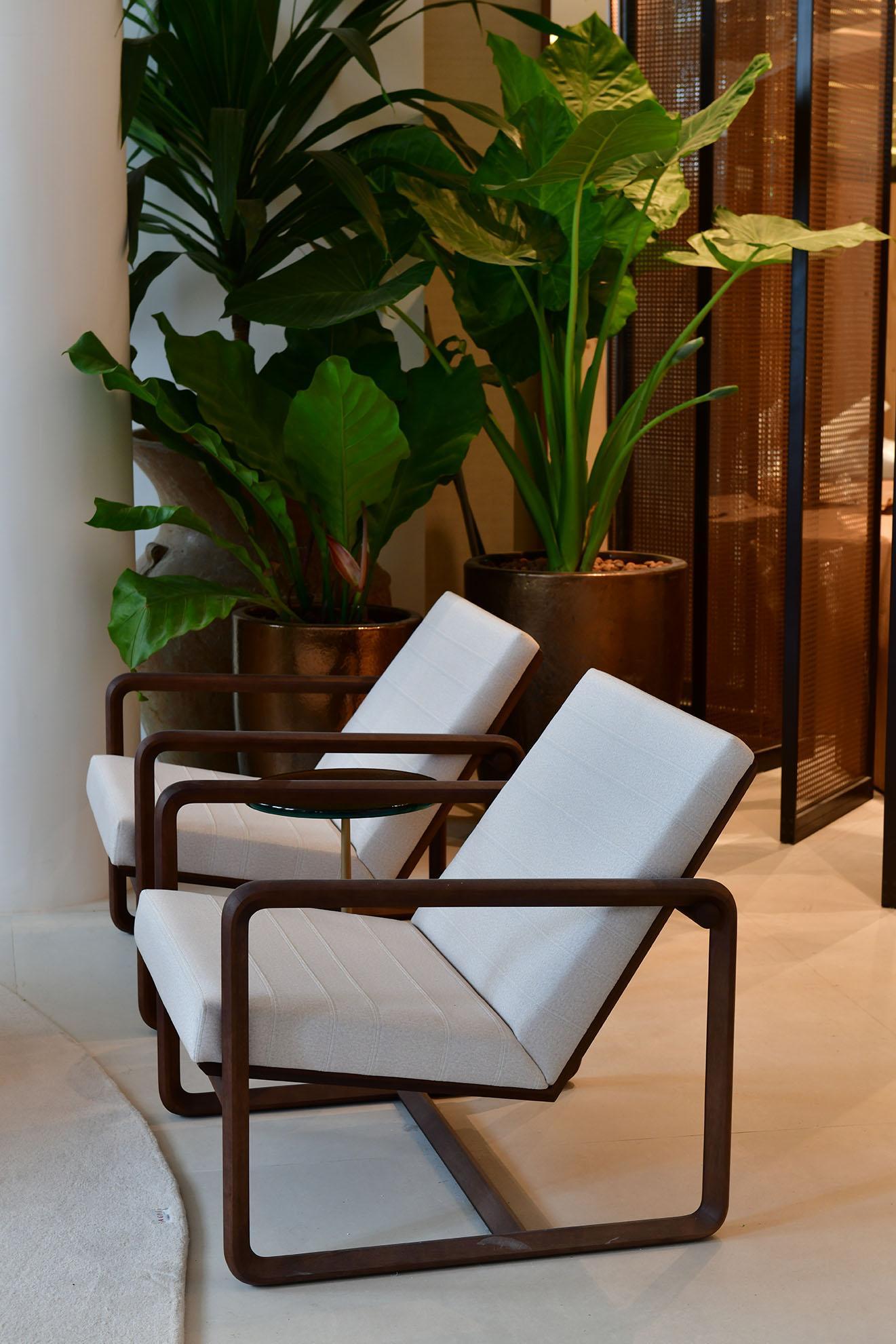 A Cadeira Bossa com braços traduz com delicadeza o pensamento de Jader Almeida, onde o design se constrói a partir do ritmo, da proporção e do silêncio. Assim como a bossa nova que inspira seu nome, a peça se revela nos detalhes sutis, nos gestos contidos e na elegância que não precisa se impor.