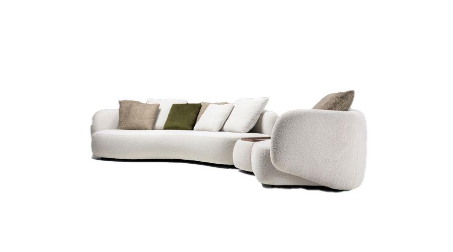 Seu desenho privilegia a fluidez. As linhas são suaves, sem rigidez, permitindo que o sofá se integre ao espaço de forma orgânica. O assento convida à permanência prolongada, enquanto o encosto oferece apoio confortável, adaptando-se a diferentes momentos do cotidiano — do descanso silencioso ao encontro.