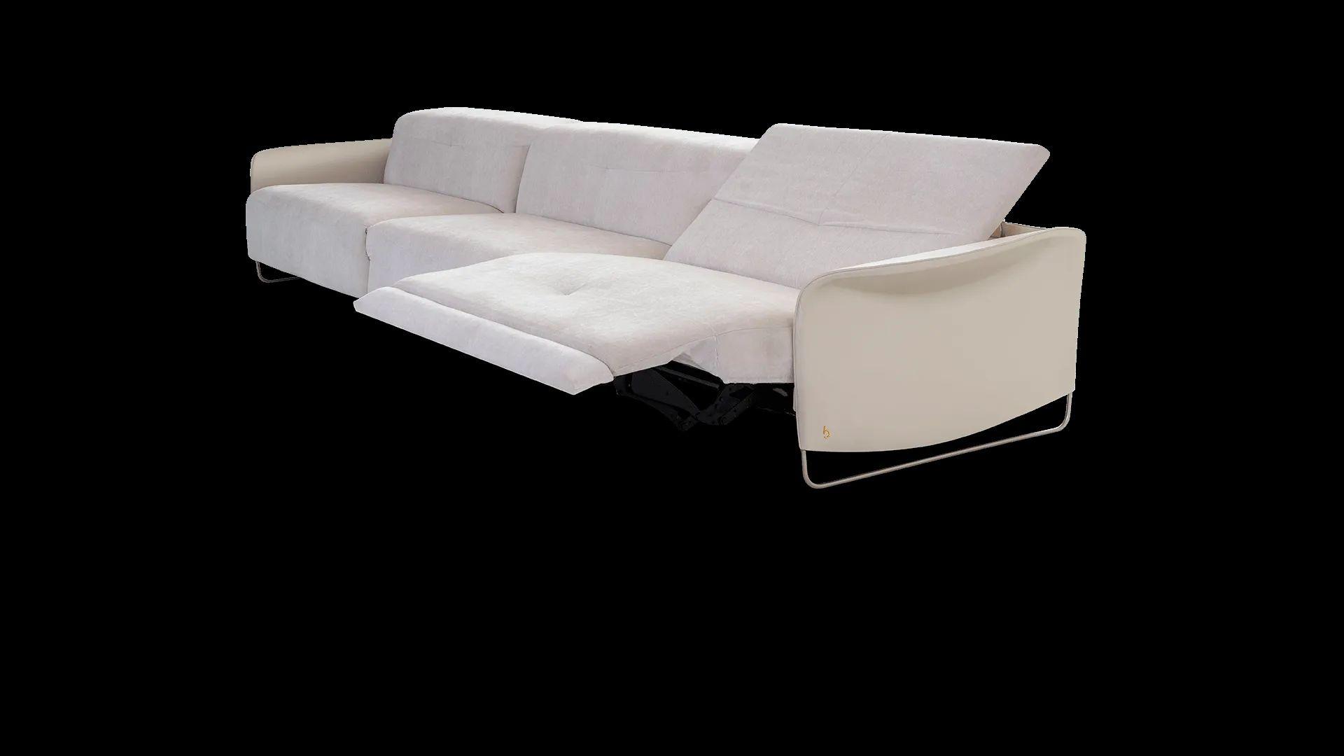 Sofá retrátil automatizado com movimentação de encosto e assento, sendo estruturada em couro natural e parte interna em tecido