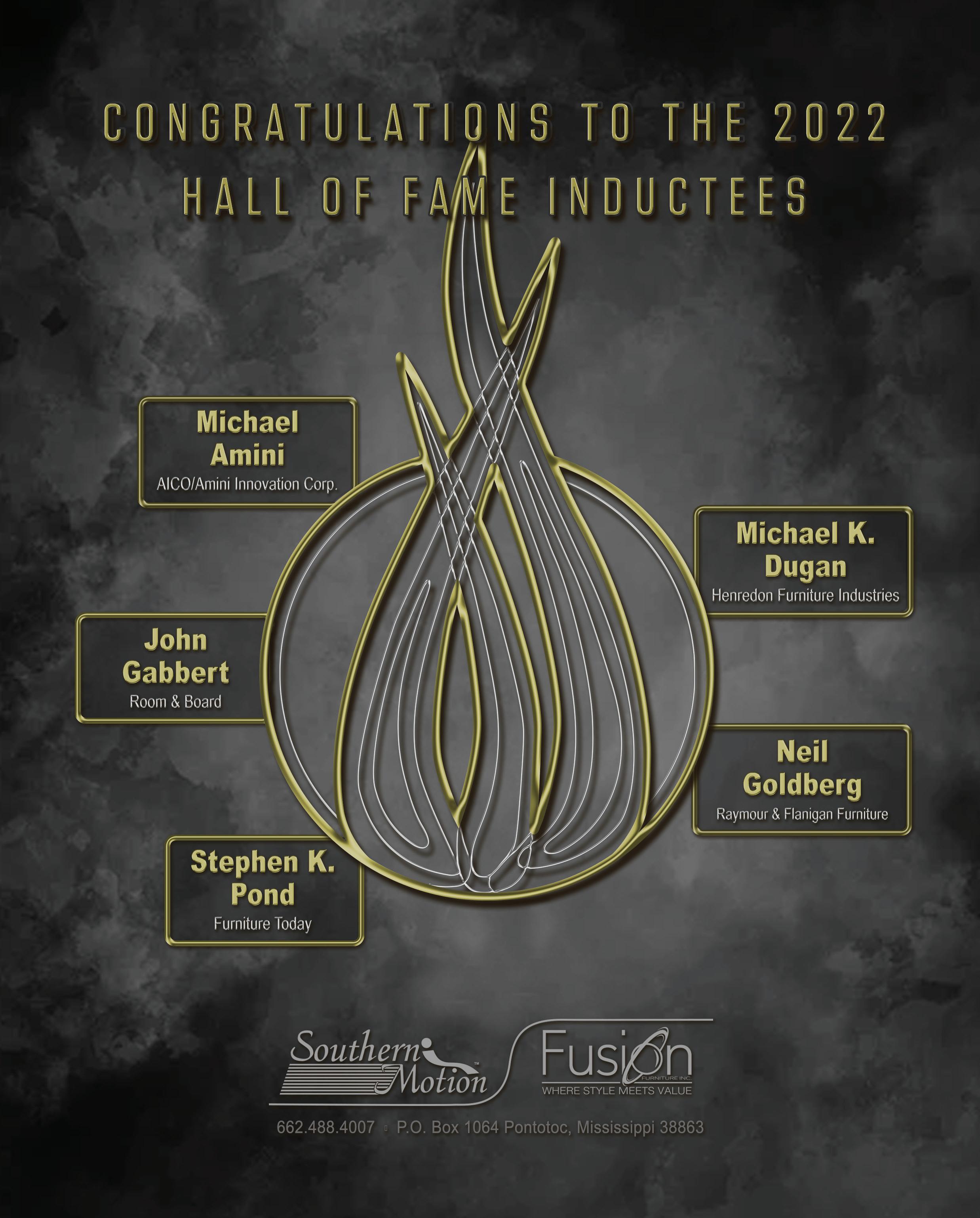 Congratulations TO ALL OF THE 2022 INDUCTEES: MICHAEL AMINI AICO MIKE DUGAN Henredon/Furniture Wars JOHN GABBERT Room & Board NEIL GOLDBERG Raymour & Flanigan STEVE POND Furniture Today YOUR FRIENDS AT