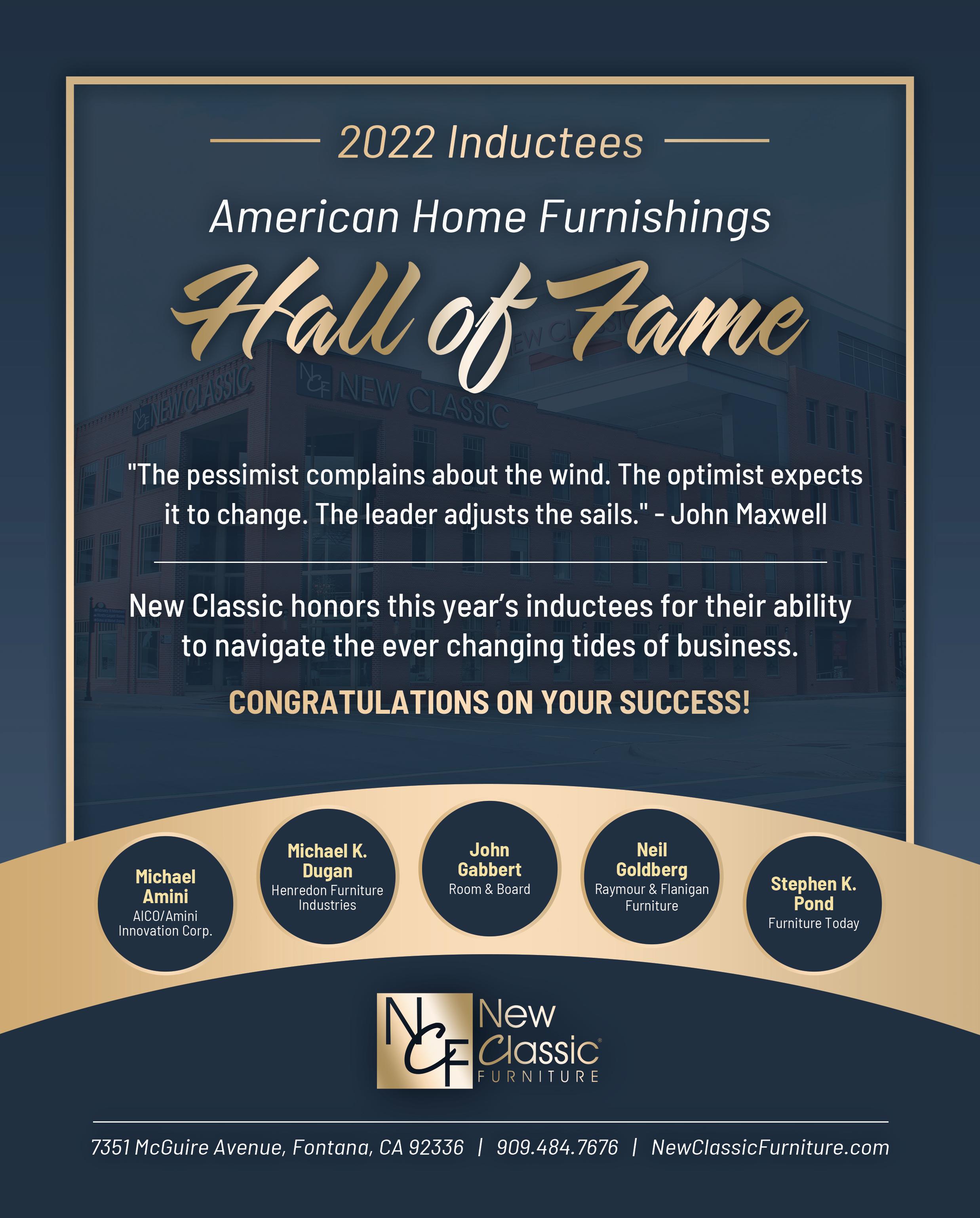 the 2022 American Home Furnishings Hall of Fame honorees for the well-deserved recognition of their contributions to the home furnishings industry.
