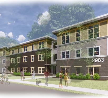 New construction multifamily housing (45unit apartment building and 5 single-family homes) in the North Linden neighborhood of Columbus, Ohio.