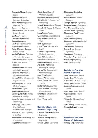 Constantin Manea Computer Science Samuel Martin Politics, Psychology & Sociology Maura McKeon Anglo-Saxon Norse and Celtic Connor Merrifield Law Sakari Mesimaki Asian & Middle Eastern Studies Sam Moody History Constance Moss History Callum Munday Law Rok Nezic Natural Sciences Dung Nguyen Economics Daniel Offenbartl-Stiegert Natural Sciences Annabel Parkinson Education with Modern Languages Brijesh Patel Natural Sciences Krishan Patel Natural Sciences Isolde Penwarden Education with English & Drama Alexander Peter Asian & Middle Eastern Studies Rebecca Phillips Education with English & Drama Helen Pierpoint Modern & Medieval Languages Danielle Poole English Eliza Prettyman Classics Gabriel Quiros Rubio Politics, Psychology & Sociology Alexander Rice Archaeology and Anthropology Emma Riggs Education with English & Drama Rebecca Rowson Philosophy Helen Scott Politics, Psychology & Sociology Molly Seymour Archaeology and Anthropology Aarya Shah Land Economy