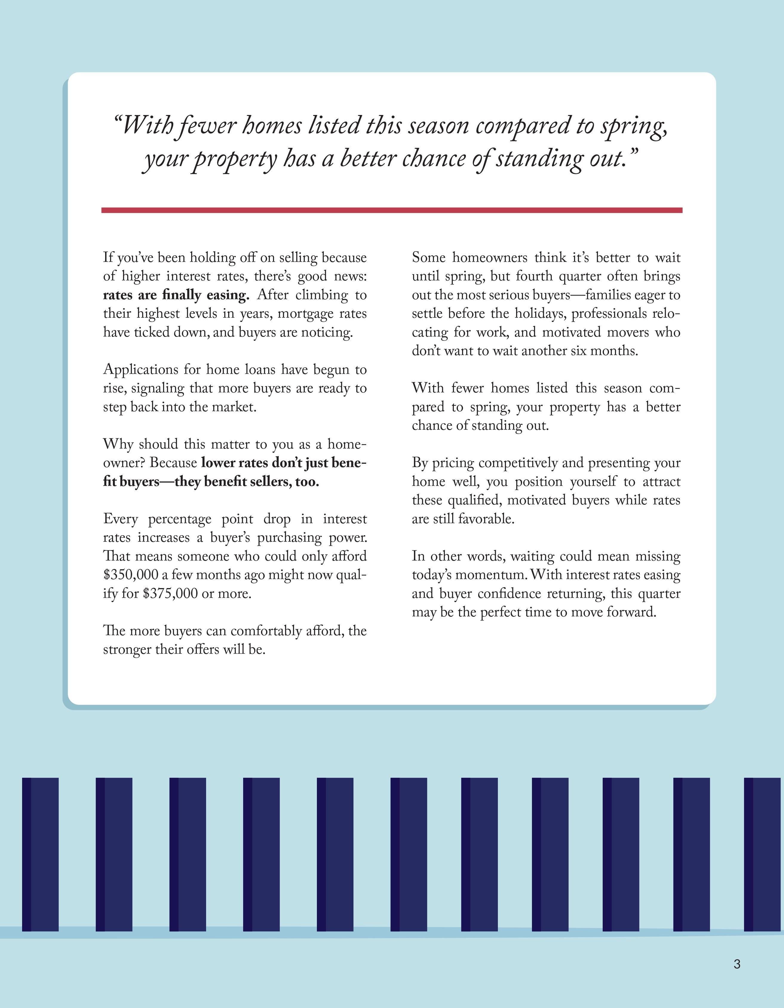 Whether you’re selling your rst home, or you’re an experienced seller, my goal is to make the process as simple and effective as possible I’ve negotiated contracts for millions of dollars’ worth of business and have been recognized for providing the utmost in quality service to my customers My clients count on my knowledge and background to provide them with insight and direction in their real estate plans. If there’s anything I can do for you, please give me a call!