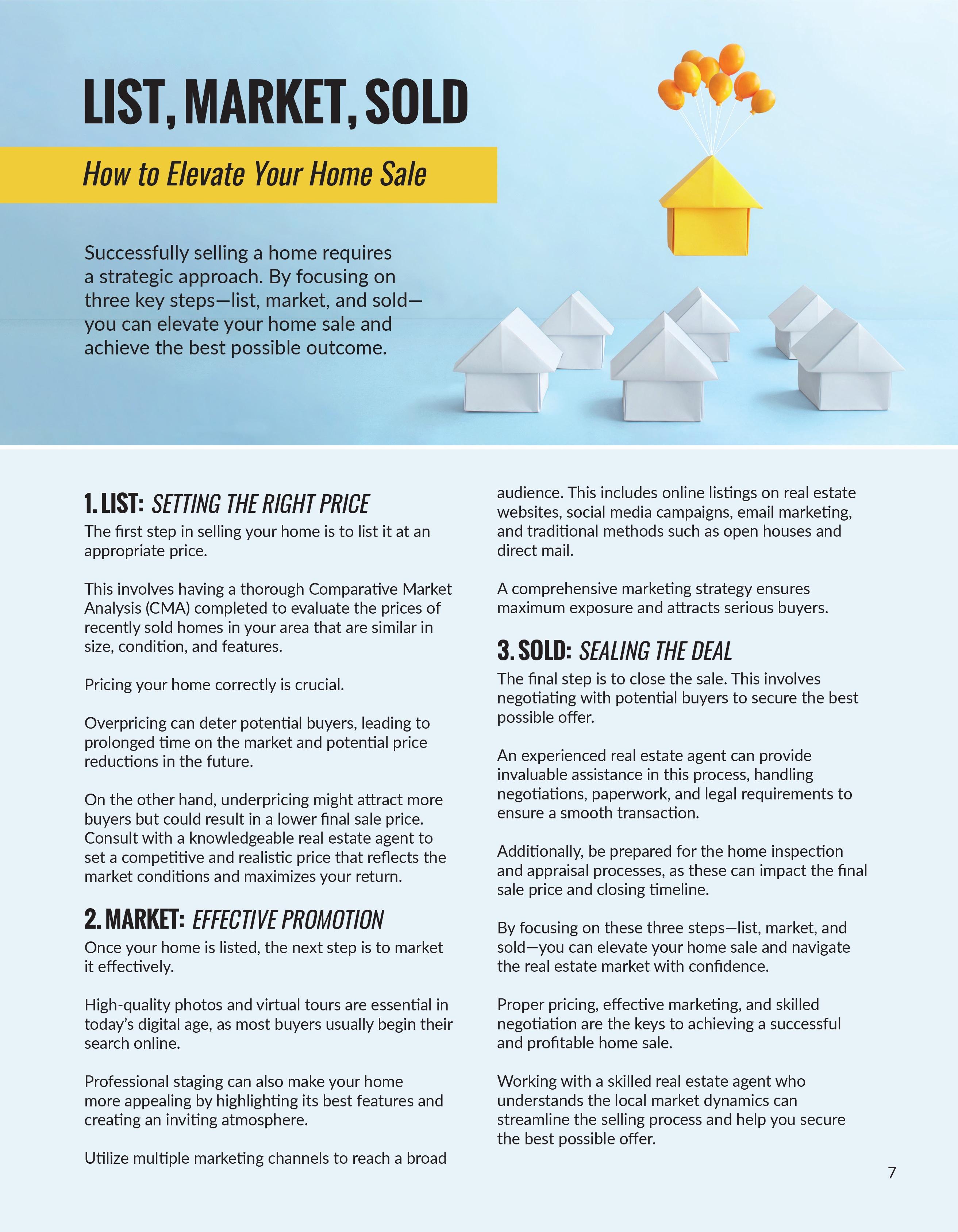 From the start, getting the price right is one of the most important decisions related to getting your home sold for top dollar I am an expert at determining the best fair market value and pricing strategies to accomplish this goal.