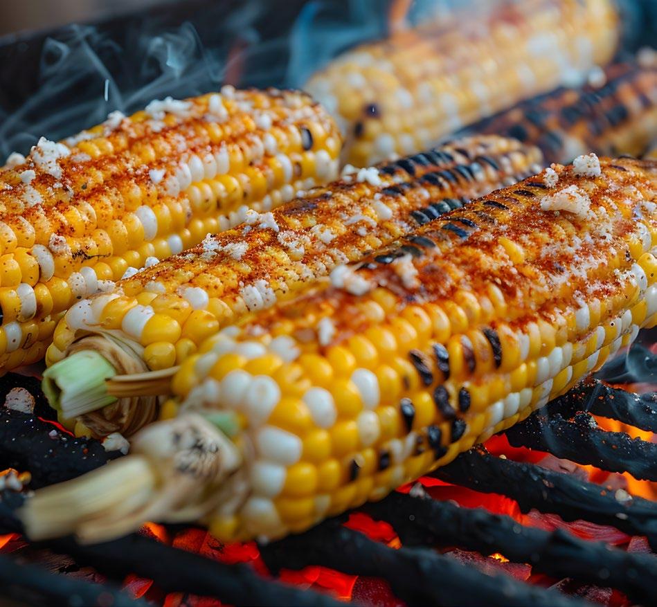 Grill corn until charred. Spread mayonnaise over the grilled corn, sprinkle with crumbled cotija cheese, and dust with chili powder. Serve with lime wedges and chopped cilantro.