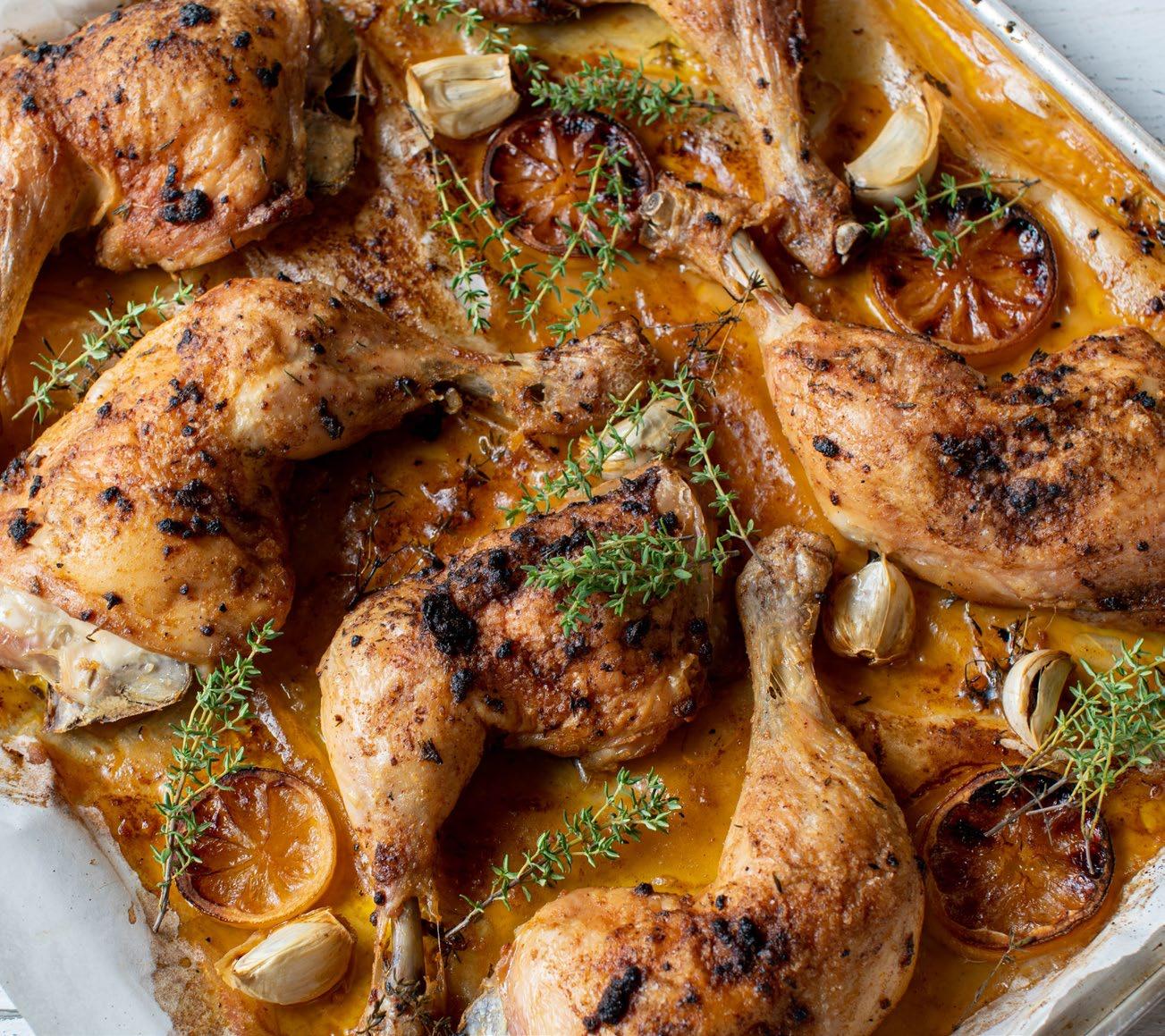 Preheat your oven to 400°F. In a small bowl, whisk together the olive oil, lemon juice, lemon zest, minced garlic, dried herbs, salt, and pepper. Place the chicken pieces in a baking dish and pour the lemon-herb mixture over them. Bake for 20-40 minutes, until internal temperature reaches 165°F. Garnish with parsley.