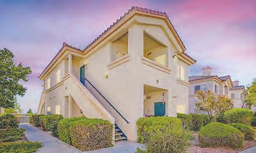 Step in to this stylish condo, o ering hardwood oor throughout. Spacious living area with gas replace and ceiling fan. The heart of this home is the updated kitchen features breakfast bar, sleek granite countertops, stainless steel appliances and ample cabinet space. Primary bedroom with walk-in closet, ensuite bath with dual sinks. One of the highlights of this condo is a small, private balcony that o ers a beautiful view of the city! Gated community with pool & spa –located near Sunrise Mountain and close to schools, shopping and public transportation.
