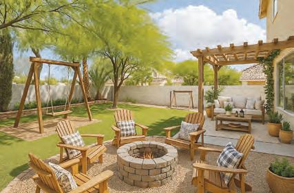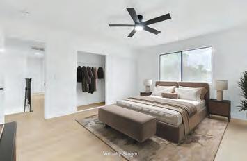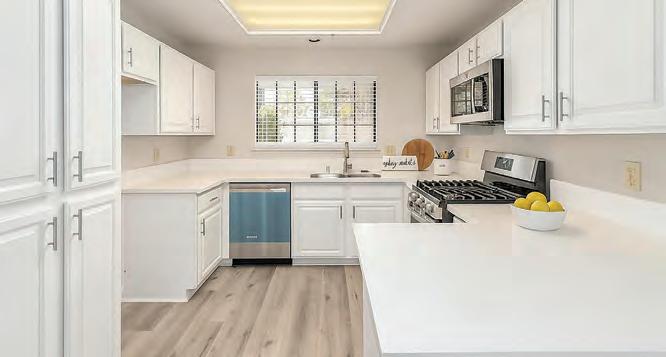 2 BA, 1811 SF home features vaulted ceilings that add a sense of grandeur to the open and airy oor plan. Safety and security are a priority, with security covers on windows for peace of mind. Step outside to the open backyard, where you’ll enjoy a low-maintenance